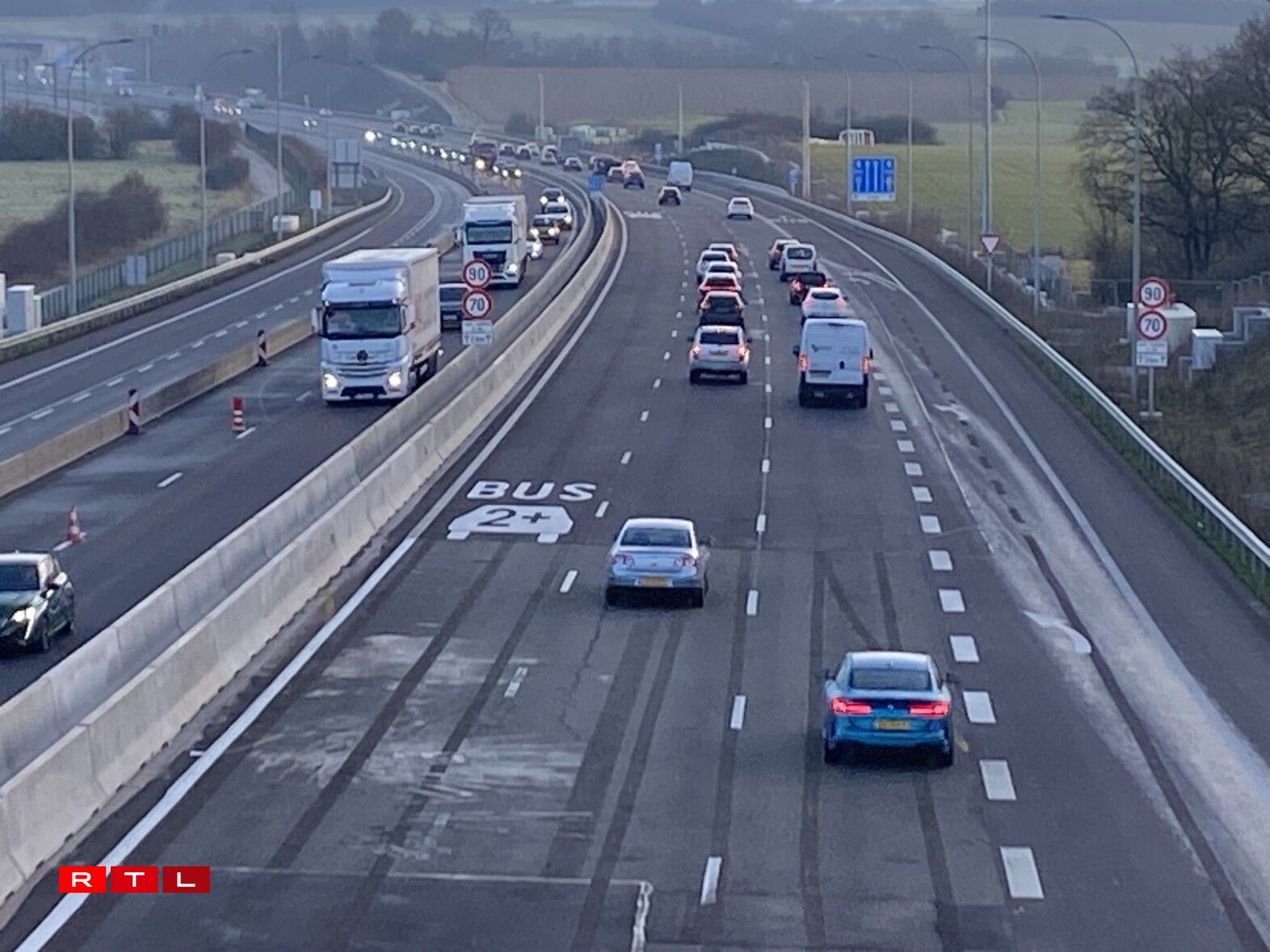 Fir den Trafic fléissend ze halen ass d’Maximal Vitesse op 90 respektiv 70 km/h reduzéiert. Um Méindegmoie géint 7 Auer ass et gutt gerullt. Méi lass war dunn no 8 Auer. Hei konnt een en éischte “Stop and Go” feststellen.