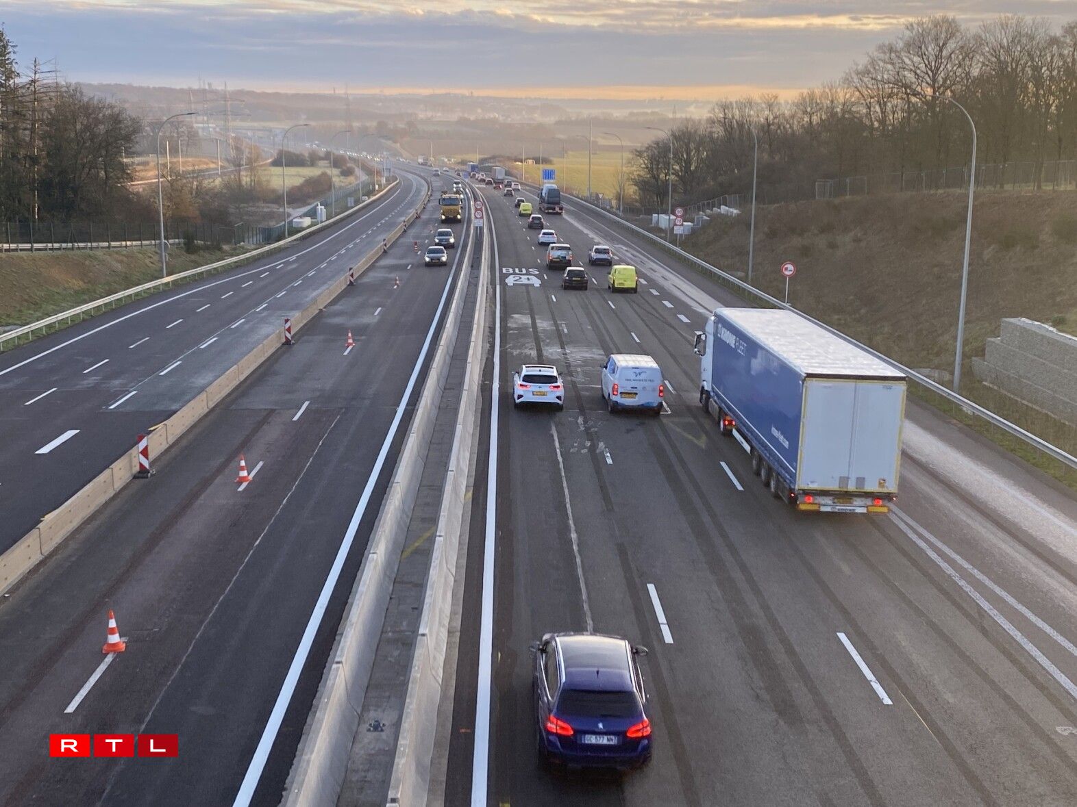 Eng vun dëse néie Spueren ass fir de Covoiturage an de Bus reservéiert.