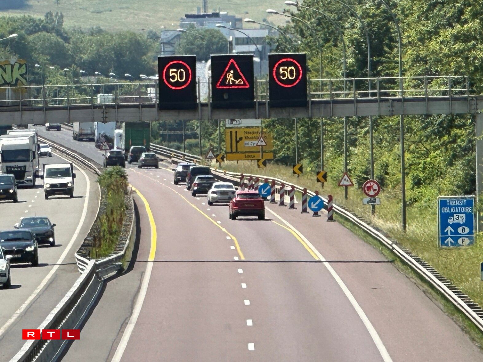 Fir sou ee Joint anzebauen, brauch een déi ganz Breet vun der Bréck. Bei der Sanéierung gëtt eng Säit vun der Bréck zou gemaach. Den Trafic leeft da bidirektional, also eespuereg. De ganze Projet soll awer nach virum Enn vun der Summervakanz fäerdeg sinn. D’Vitess ass op dëser Plaz och reduzéiert ginn. Muss een dann elo mat Stau rechnen, Fritz de Oliveira, Chef de la Division des Ouvrages d’Art?