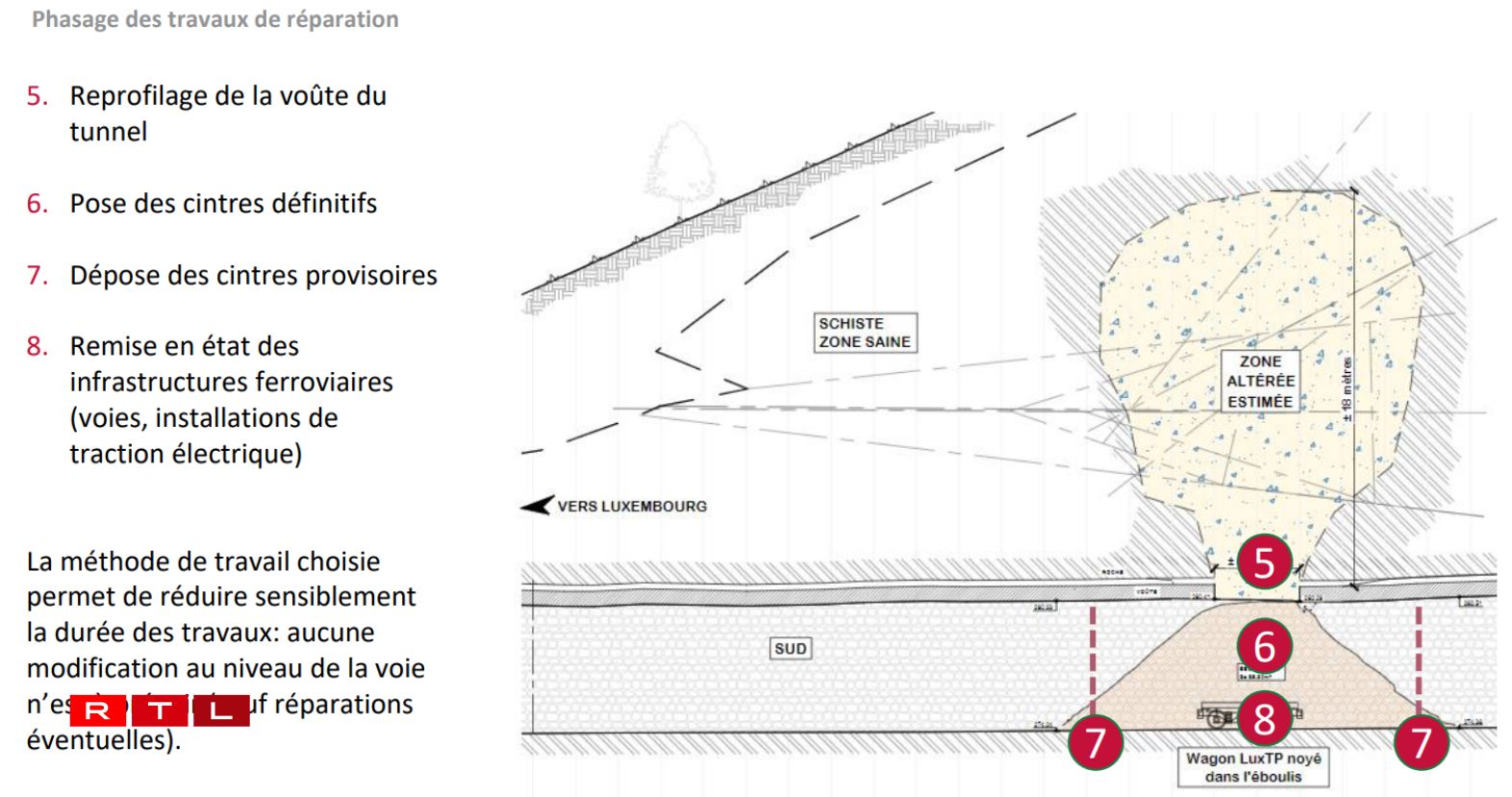 Als lescht Info hat et geheescht, dass den Tunnel den 11. Dezember nees soll opgoen. Deen Datum gouf awer en Dënschdeg de Moien op enger Pressekonferenz vun den CFL korrigéiert. Elo heescht et, et géif bis no der Ouschtervakanz daueren, bis déi Streck nees operationell ass.