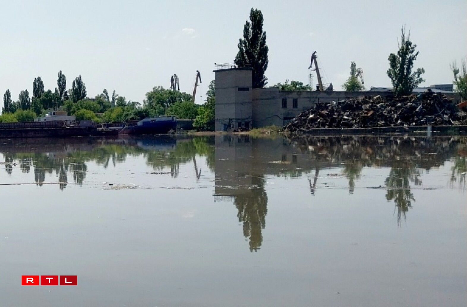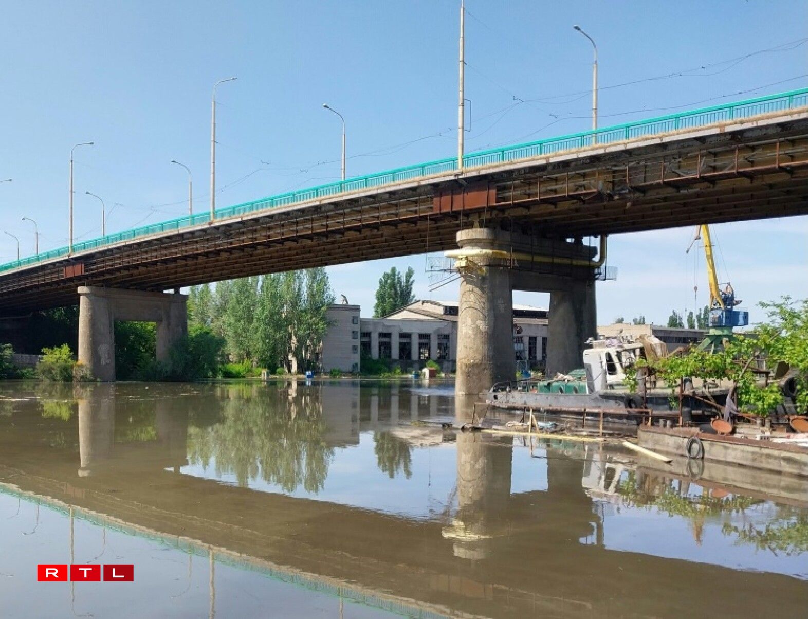 Aus der Ukrain heescht et, dass schonn eng 150 Tonne Maschinnenueleg an de Floss gelaf sinn. 300 weider Tonnen riskéieren och nach auszelafen.