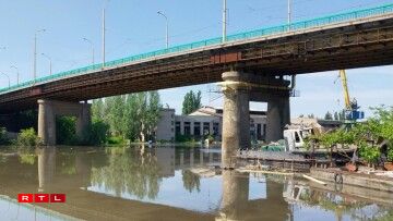 De Peegel vum Floss Dnipro ass ëm ronn 12 Meter geklommen a bis ewell géife scho 600 Haiser ënner Waasser stoen. De Kachowka-Staudamm ass ronn 30 Meter héich an iwwer 3 Kilometer laang.