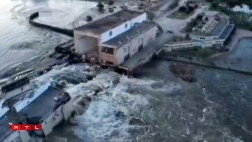 No der deelweiser Zerstéierung, d’Russe schwätze vun enger kompletter Zerstéierung vum Kachowka-Staudamm am Süde vun der Ukrain stinn Uertschaften an der Regioun Cherson ënner Waasser a Bewunner hu missen evakuéiert ginn. Déi ukrainesch Autoritéiten hunn ugefaange ronn 17.000 Mënschen a Sécherheet ze bréngen. Op der vu Russland occupéierter Säit vum Floss Dnipro solle weider 25.000 Mënschen evakuéiert ginn. Et gëtt geschat, datt Gebidder mat méi wéi 40.000 Awunner riskéieren, iwwerschwemmt ze ginn.