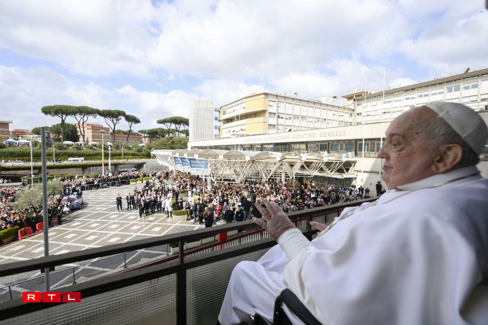 Wéi ugekënnegt huet de Poopst sech um Sonndeg an der Mëttesstonn kuerz op engem Balcon vum Gemelli-Spidol gewisen.