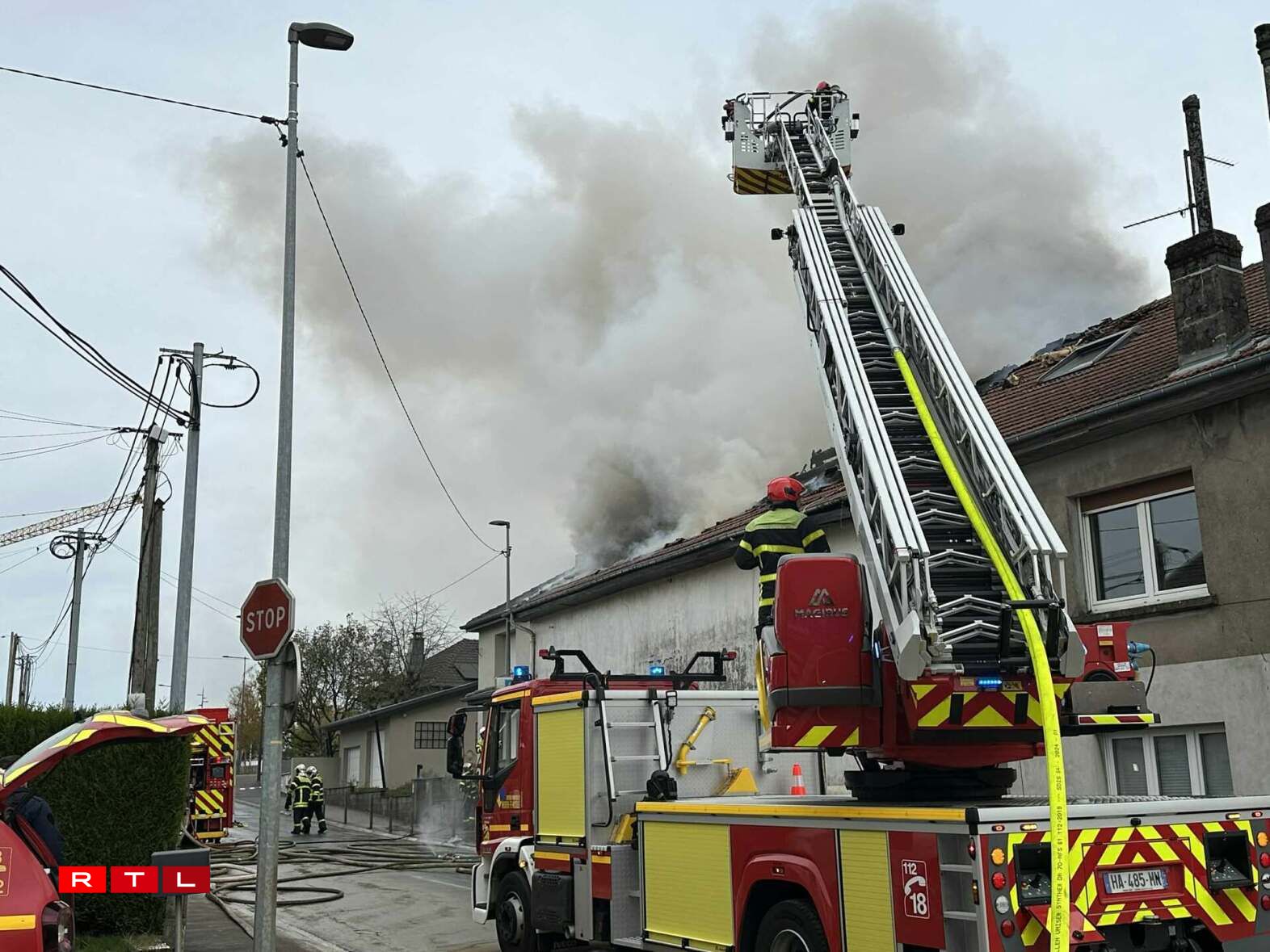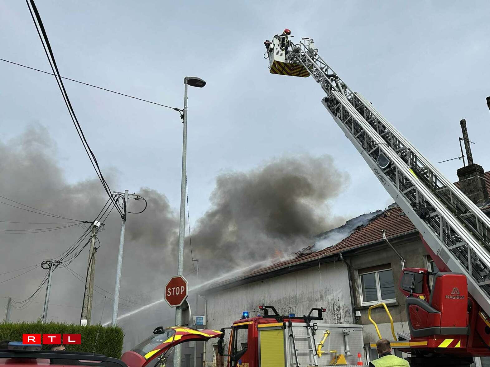 Am Ganze goufen iwwer 40 Pompjeeë mobiliséiert. Zwee grouss Gefierer mat Leedere goufen agesat, fir op den Daach ze kommen, och wann dëse praktesch komplett zerstéiert gouf.