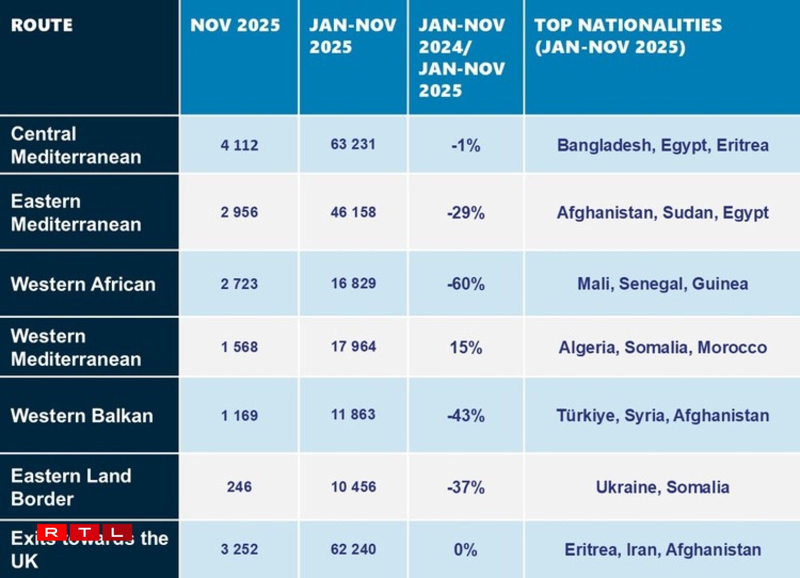 Frontex schreift am Communiqué, dass déi meeschte Leit aus dem Bangladesch, Ägypten an Afghanistan géinge kommen.