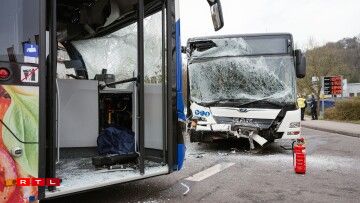 Zwee Busser krute sech op enger Kräizung op der Héicht vum Saar-Basar um Eschberg géint 9.15 Auer frontal ze paken, esou ee Spriecher vun der Police. Ënnert de Blesséierte sinn och 12 Crèchë-Kanner, déi an engem vun de Busser waren.