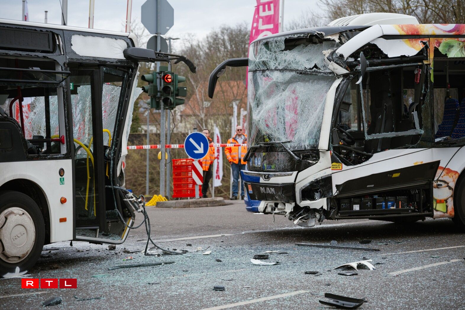 Den Oberbürgermeister Uwe Conradt schwätzt vu ronn 30 Blesséierten insgesamt. Eng sëllege Secouriste sinn den Ament nach op der Plaz. 40 Persoune wieren zum Zäitpunkt vum Accident an de Busser gewiescht, heescht et weider vun de Beamten. Der Saarbrücker Zeitung no wieren déi Blesséiert op Spideeler an der Géigend verdeelt ginn, an och een Helikopter wier am Asaz gewiescht.