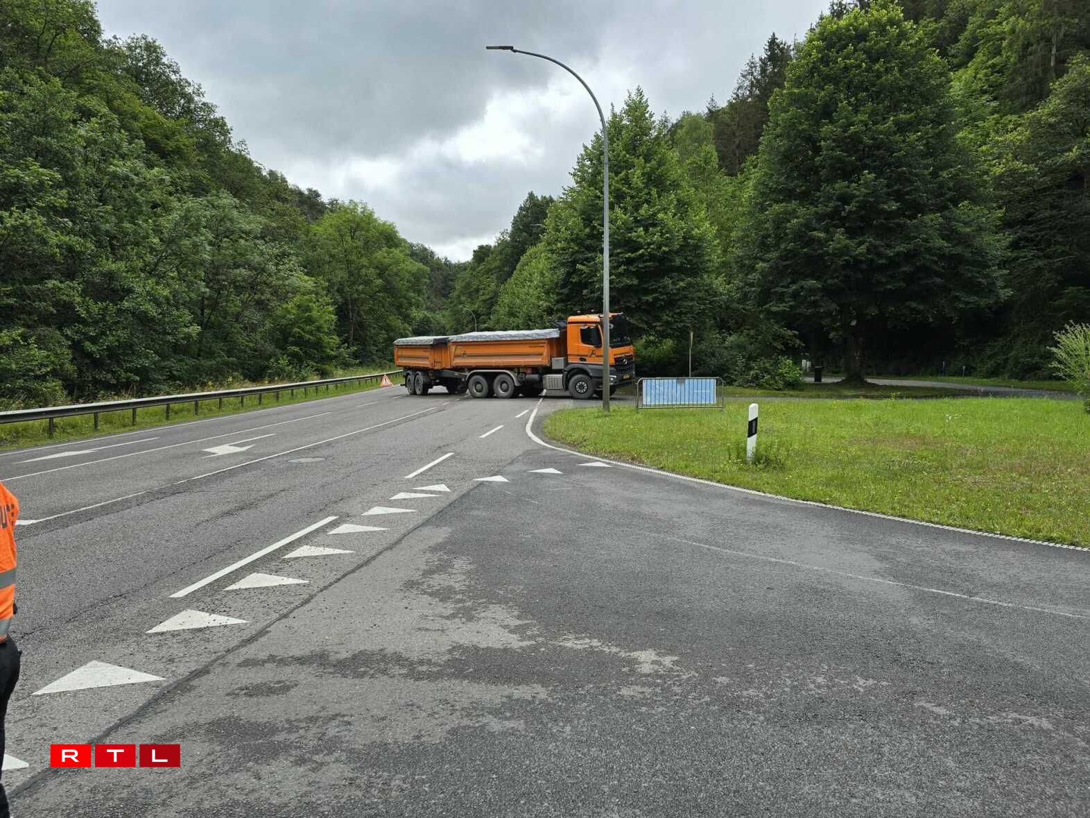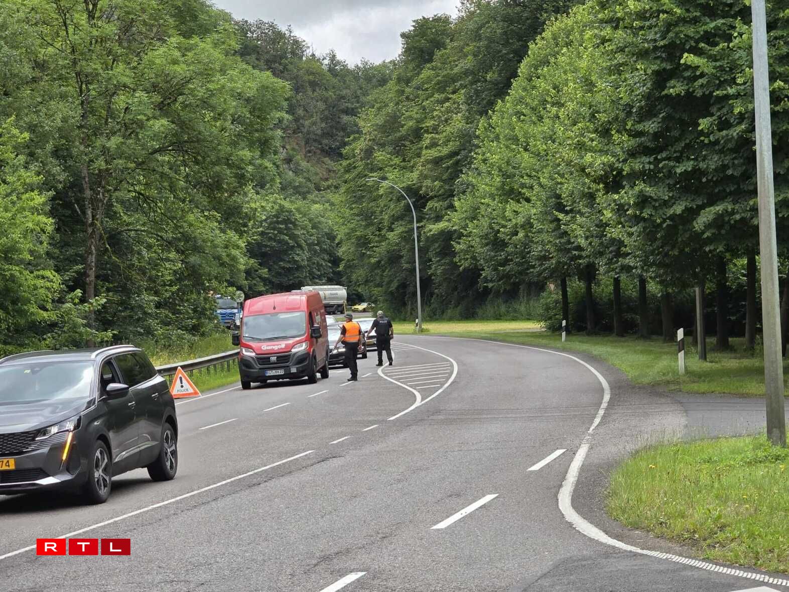 Op Uerder vum Parquet ass de Miess- an Erkennungsdéngscht vun der Police op der Plaz. D’Streck ass den Ament fir den Trafic gespaart.
