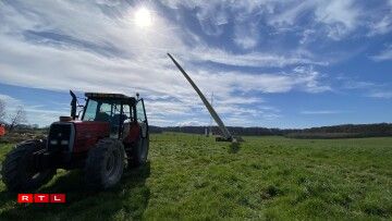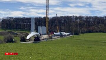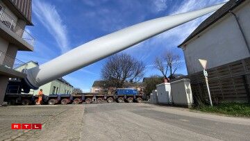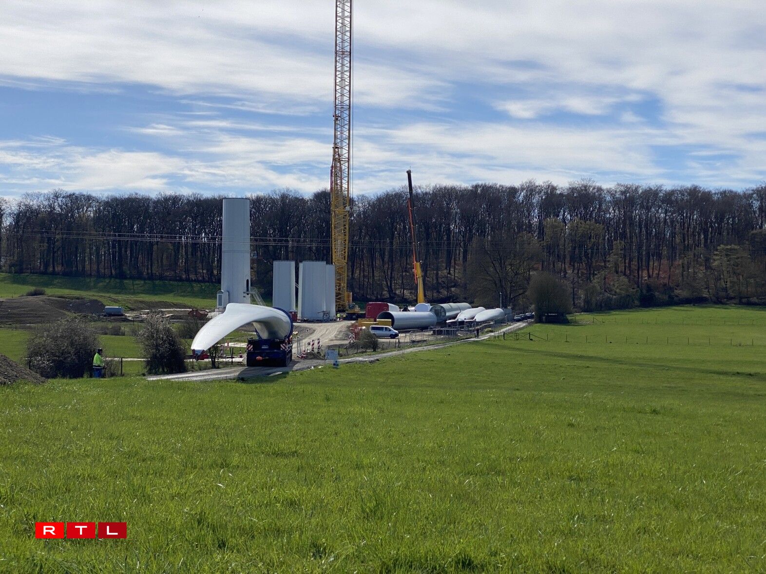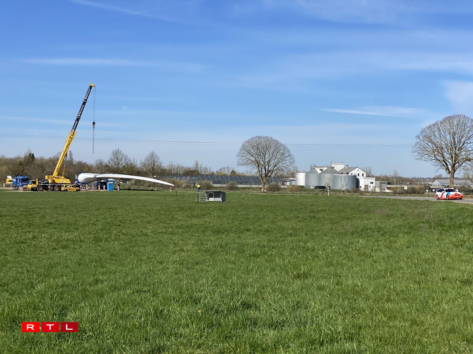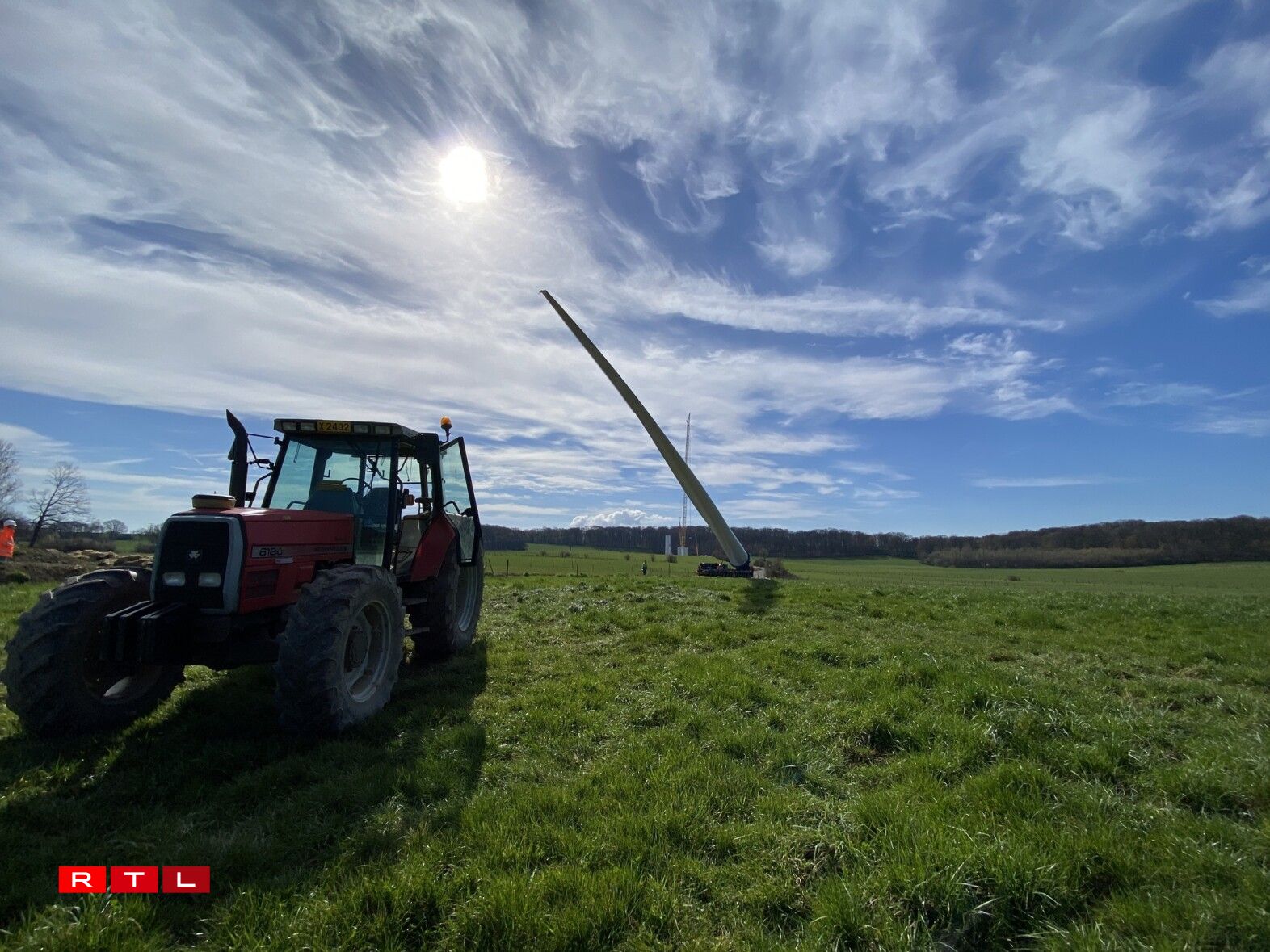 Um Dënschdeg goufe riseg Rotorblieder deels héichkant duerch d’Stroosse manövréiert, guer net einfach bei enger Längt vun ëm déi 60 Meter an engem Gewiicht vu 25 Tonnen pro Blat. Déi gehéieren zu enger Wandmillen, déi an de Felder hannert dem Duerf opgeriicht gëtt a schonn am Juni soll a Betrib goen. Da soll se eng 1.500 Stéit mat Stroum versuergen.