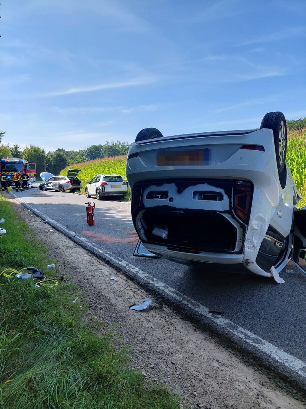 Dobäi ass de Won mat engem Auto kollidéiert, deen entgéint komm ass. Den 1. Won huet sech iwwerschloen an ass an e weideren Auto gerannt, deen entgéint koum.