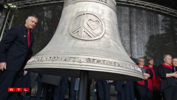3 Friddens-Klacken aus Krichs-Schrott fir Verdun, Saarbuerg a Mamer