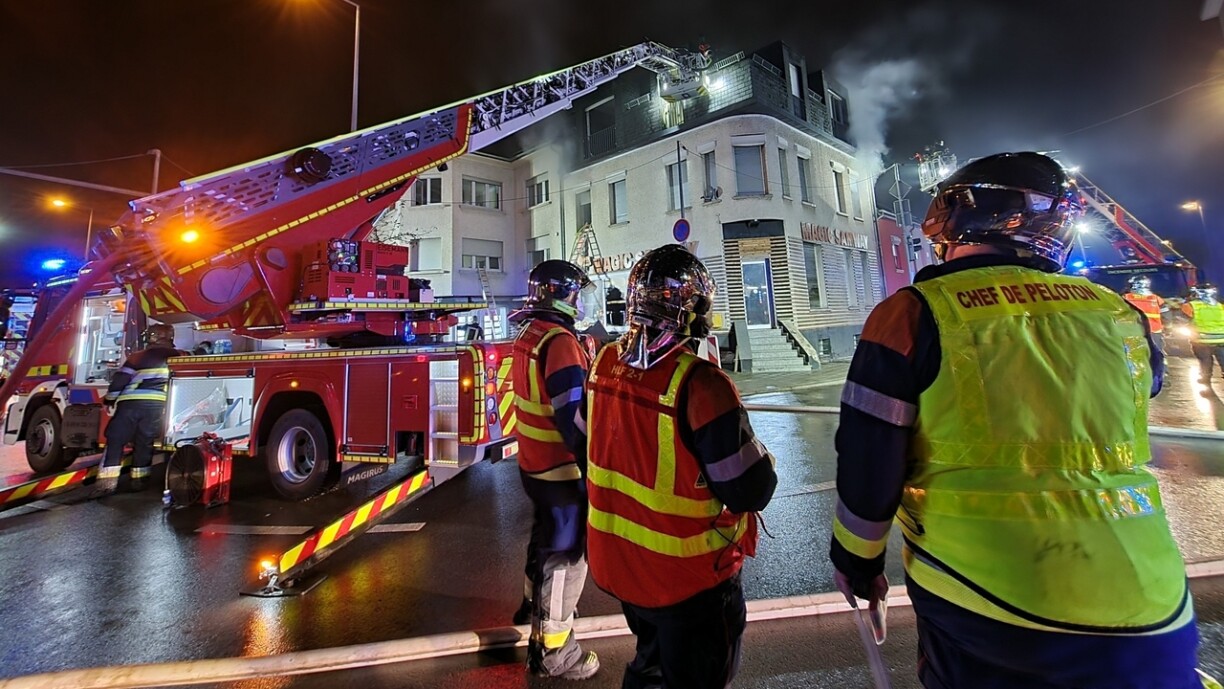 D‘Feier, dat am Keller ugefaangen hat, hat sech schonn op e puer Stäck ausgebreet, wéi d‘Secouristen op d‘Plaz komm sinn. 3 Persounen, déi am Haus blockéiert waren, konnten mat Leederen gerett a mat der Ambulanz an d‘Spidol bruecht ginn. Géint 4.30 Auer e Samschdeg de Moie war d'Feier komplett geläscht. Op der Plaz waren 63 Pompjeeën aus 9 Asazzenteren, 3 Ambulanzen, genee ewéi de SAMU. D'Awunner vun der Residence goufe vun der Gemeng Déifferdeng relogéiert.