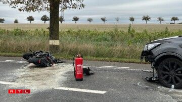 D’Police huet e Méindeg am Nomëtteg Prezisiounen zum Accident ginn. Éischten Informatiounen no hätt den 39 Joer ale Motocyclist beim Iwwerhuele vun engem Bus op der Streck vun Alzeng a Richtung Schlammestee d’Kontroll iwwert säi Gefier verluer a wier op d’Géigespuer geroden a gefall. Do wier hie mat zwee Autoe kollidéiert, déi him entgéintkoumen.
