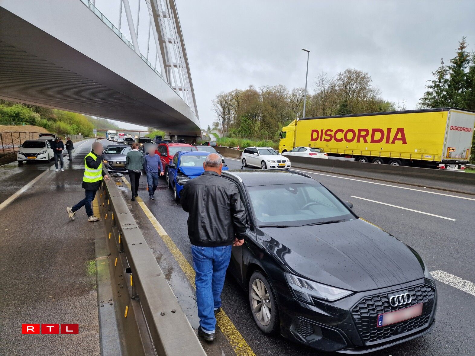 E Freideg an der Mëttesstonn huet et op der A3 Richtung Stad, ënnert der neier Eisebunnsbréck, kuerz virum Gaasperecher Kräiz gerabbelt, dat net ze knapps.