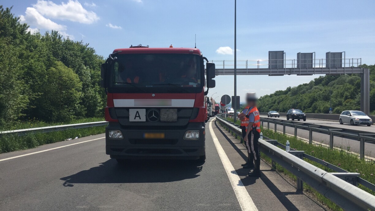 Hei goufe geziilt Camione kontrolléiert, déi a Richtung Däitschland deen Dag ënnerwee waren. Am Kader vum Transitverbuet dierfe Camionen op Sonndeger a Feierdeeg jo net an Däitschland d’Grenz passéieren.
