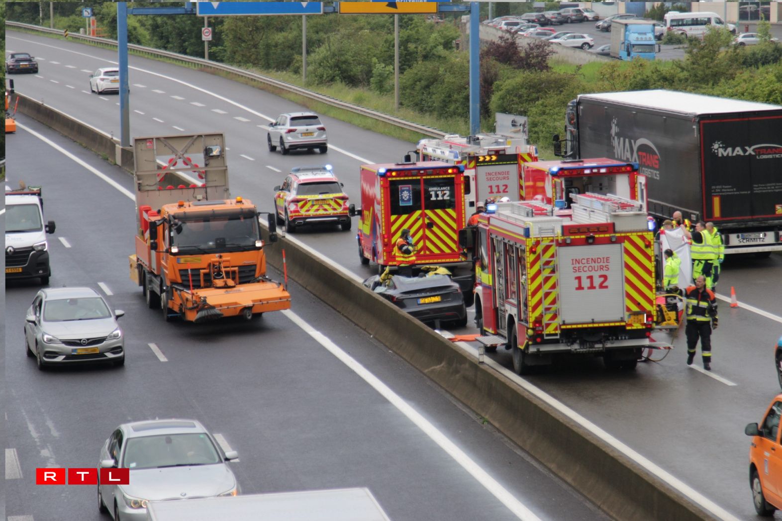 Areler AutobunnAccident op der A6 a Richtung Belsch, kuerz virun der Sortie Mamer