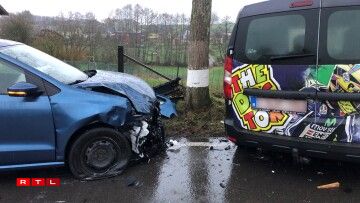 E Méindeg de Moie koum et géint 7.20 Auer op der N12 tëscht Groussbus an der Hierheck zu engem Accident tëscht zwee Gefierer.