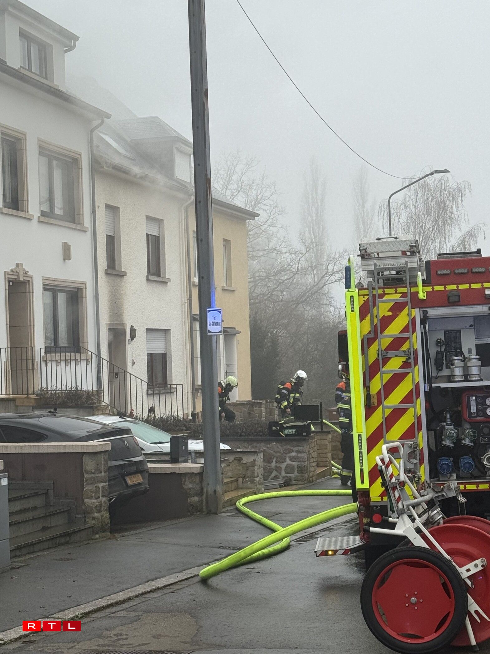An der Rue Sainte Catherine zu Hamm huet kuerz no 15 Auer e Sonndeg en Haus gebrannt. Et gouf kee blesséiert an d’Ekippen aus der Stad a vun Hesper waren op der Plaz.