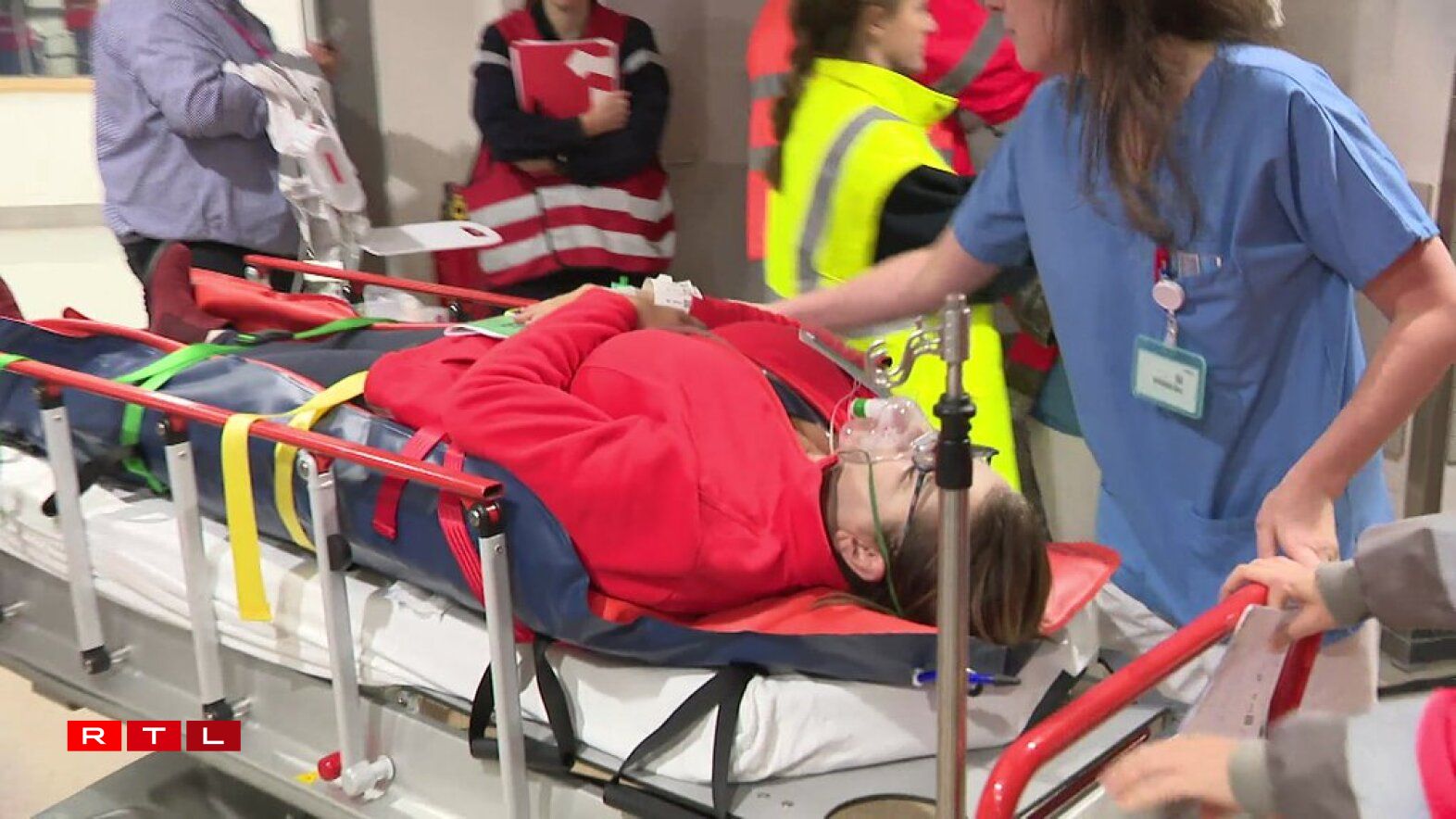 Am Minuttentakt koumen d’Ambulanzen an der Urgence um Kierchbierg un. Eng Explosioun soll an engem Kinossall Dosende Leit liicht, respektiv uerg blesséiert hunn, esou den Zenario an dësem Test.