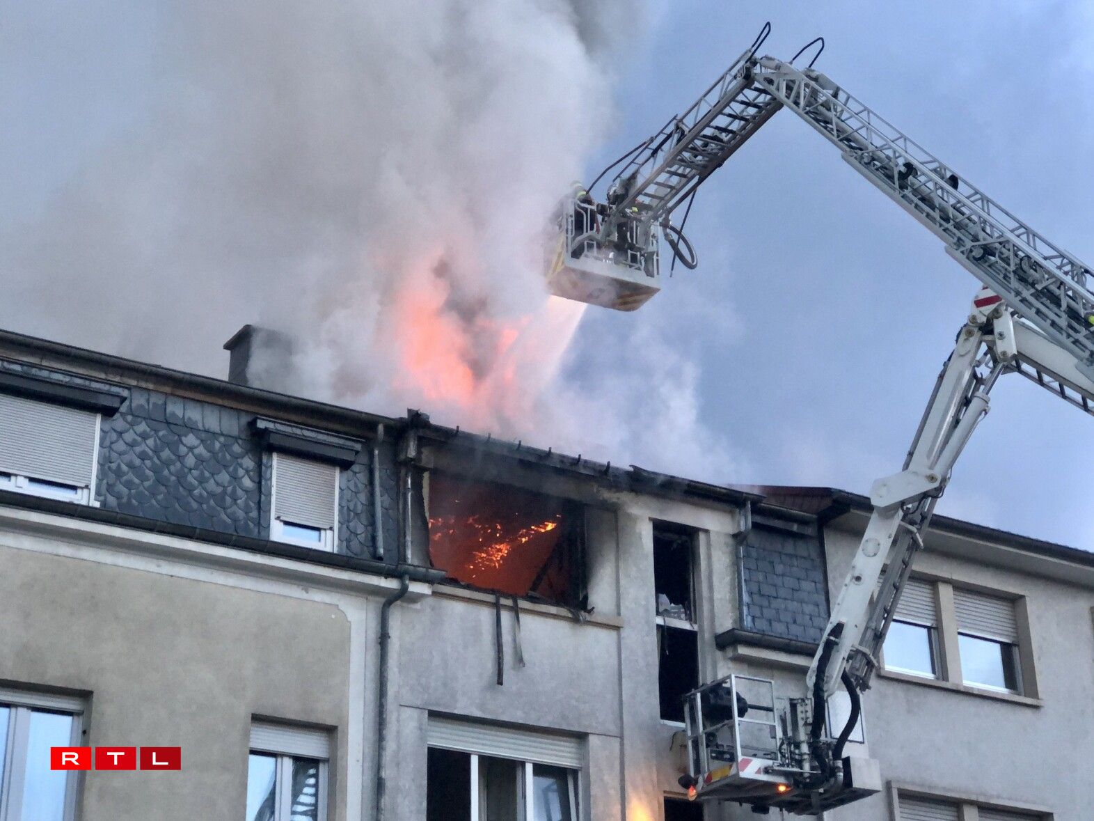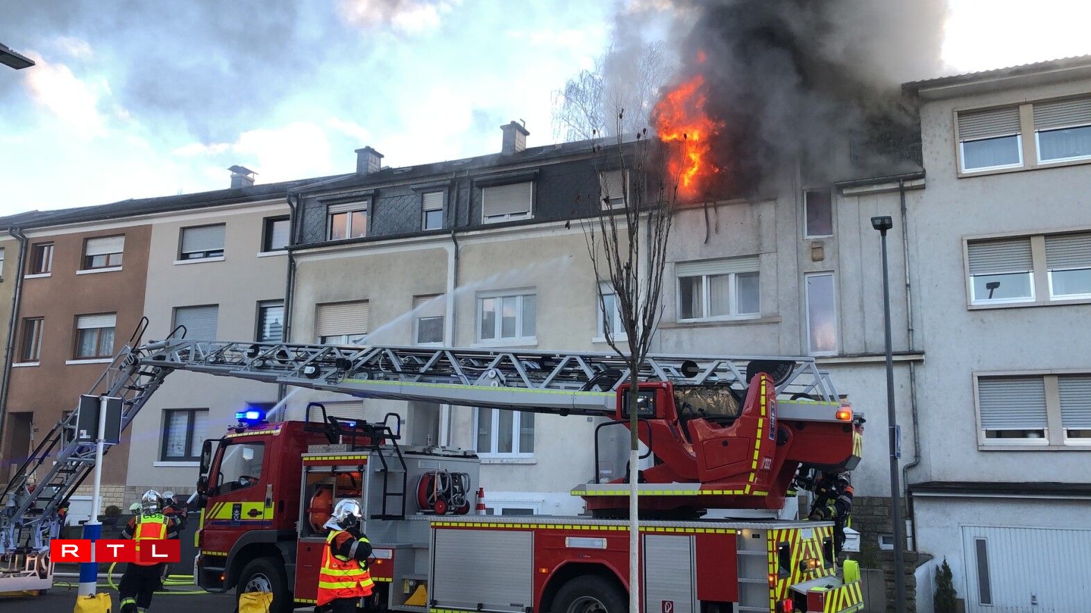 De Brand wier um Späicher ausgebrach, sou éischt Informatiounen. Duerch dat séiert Agräife konnt evitéiert ginn, dass d’Feier op d’Nopeschhaiser iwwergräife konnt. Den Daach vum dräistäckegen Eefamilljenhaus gouf demontéiert, fir weider Brandnäschter auszeschléissen. Wéi de CGDIS mellt, wier beim Brand eng Persoun blesséiert ginn.