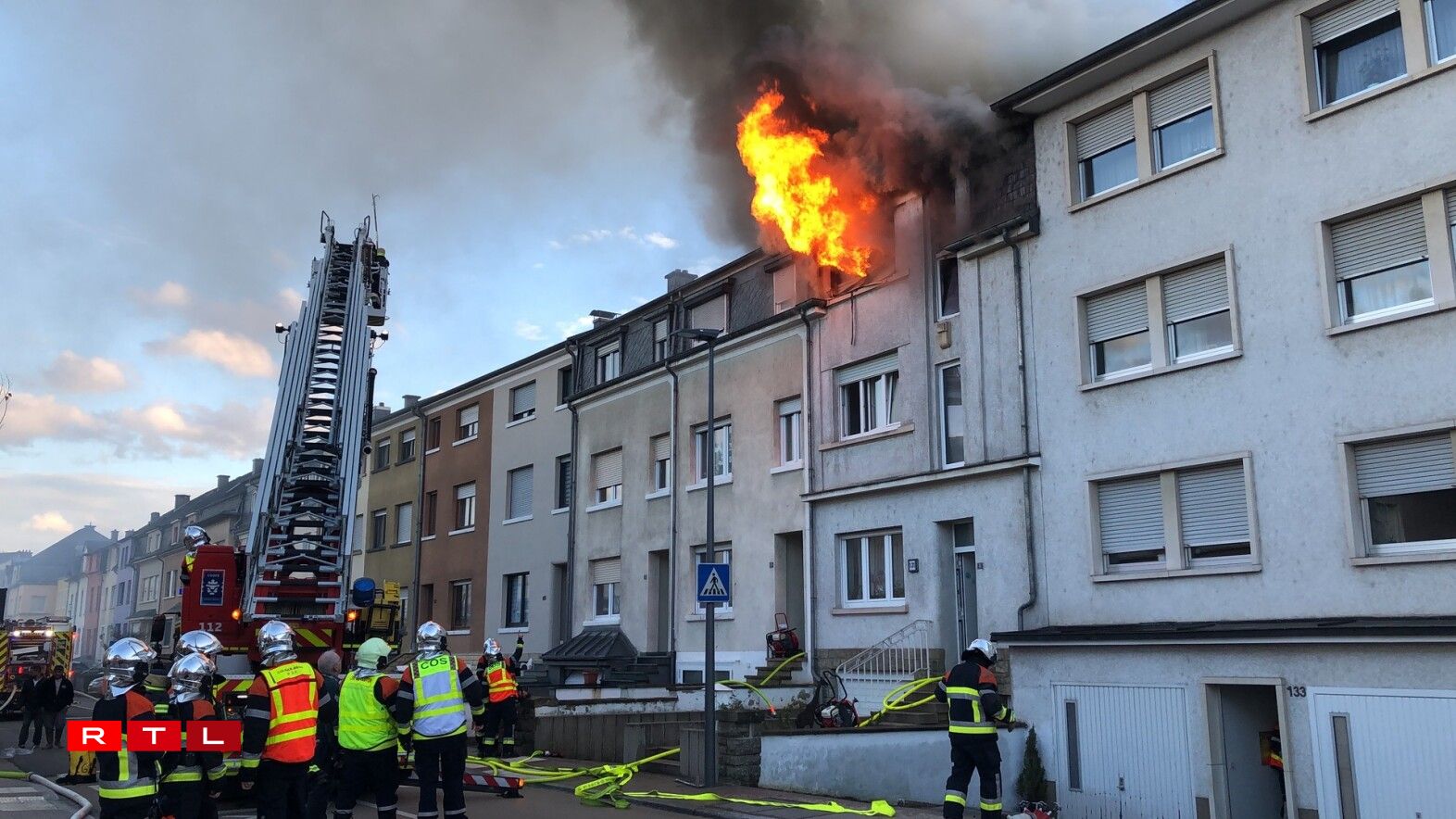 Effektiv huet ee scho vun der Nordstrooss aus relativ vill Damp gesinn. Den Daach vun engem Haus an der Rue de Warken hat Feier gefaangen.