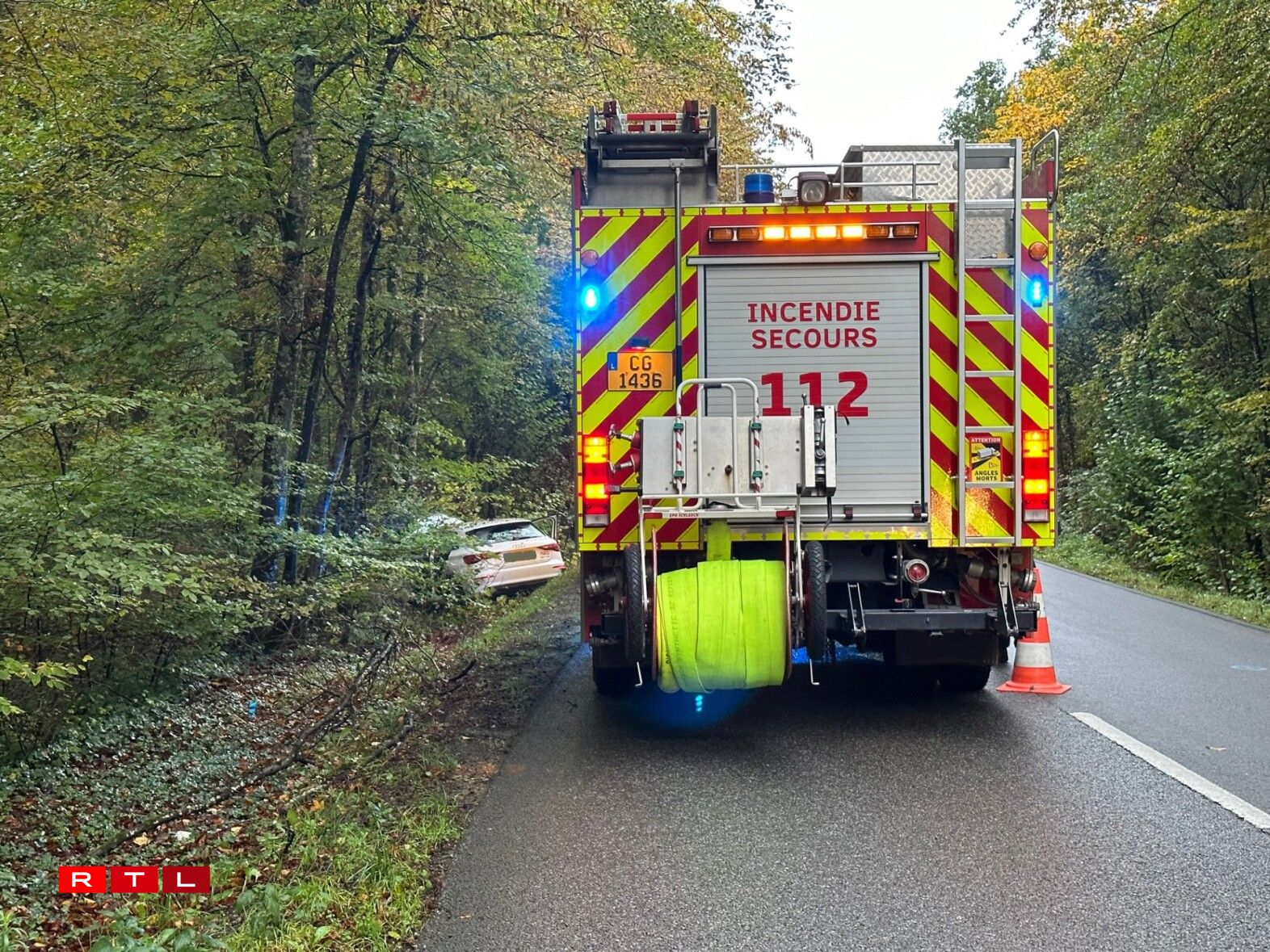 Zwou Stonne virdru war um CR226 tëscht Siren a Conter eng Persoun bei engem Accident blesséiert ginn. Hei waren de Samu-Noutdokter, grad ewéi d’Ambulancieren aus der Stad an d’Pompjeeë vu Weiler zum Tuer, Mutfert an Hesper am Asaz.