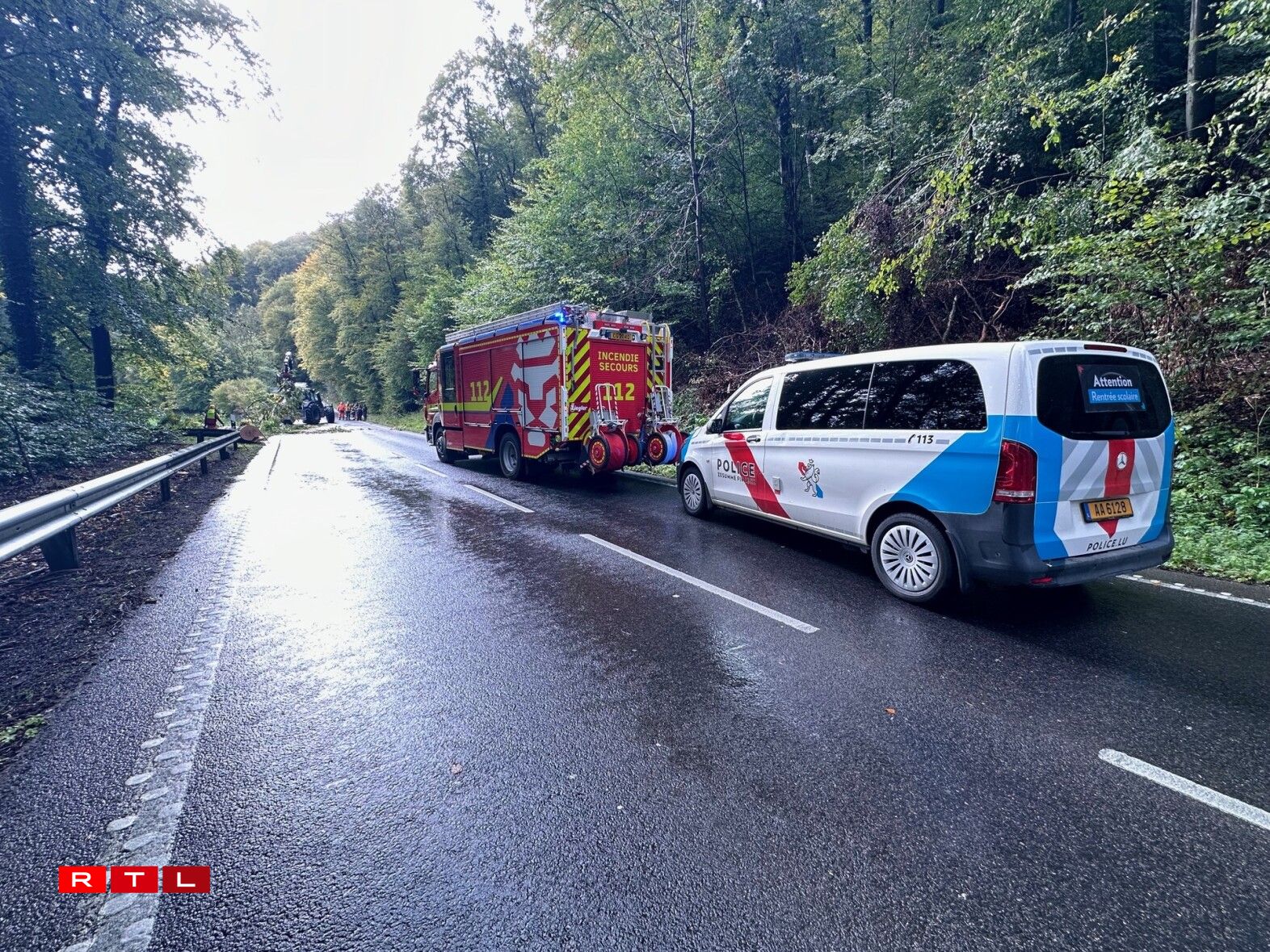 Fir de Chauffer war dat sécher e Schockmoment, dëse koum éischten Informatiounen no fir eng Kontroll an d’Spidol. D’Streck war wärend den Opraumaarbechte komplett fir den Trafic gespaart an och d’Sortie Schëndels op der A7 a Richtung Stad war betraff.