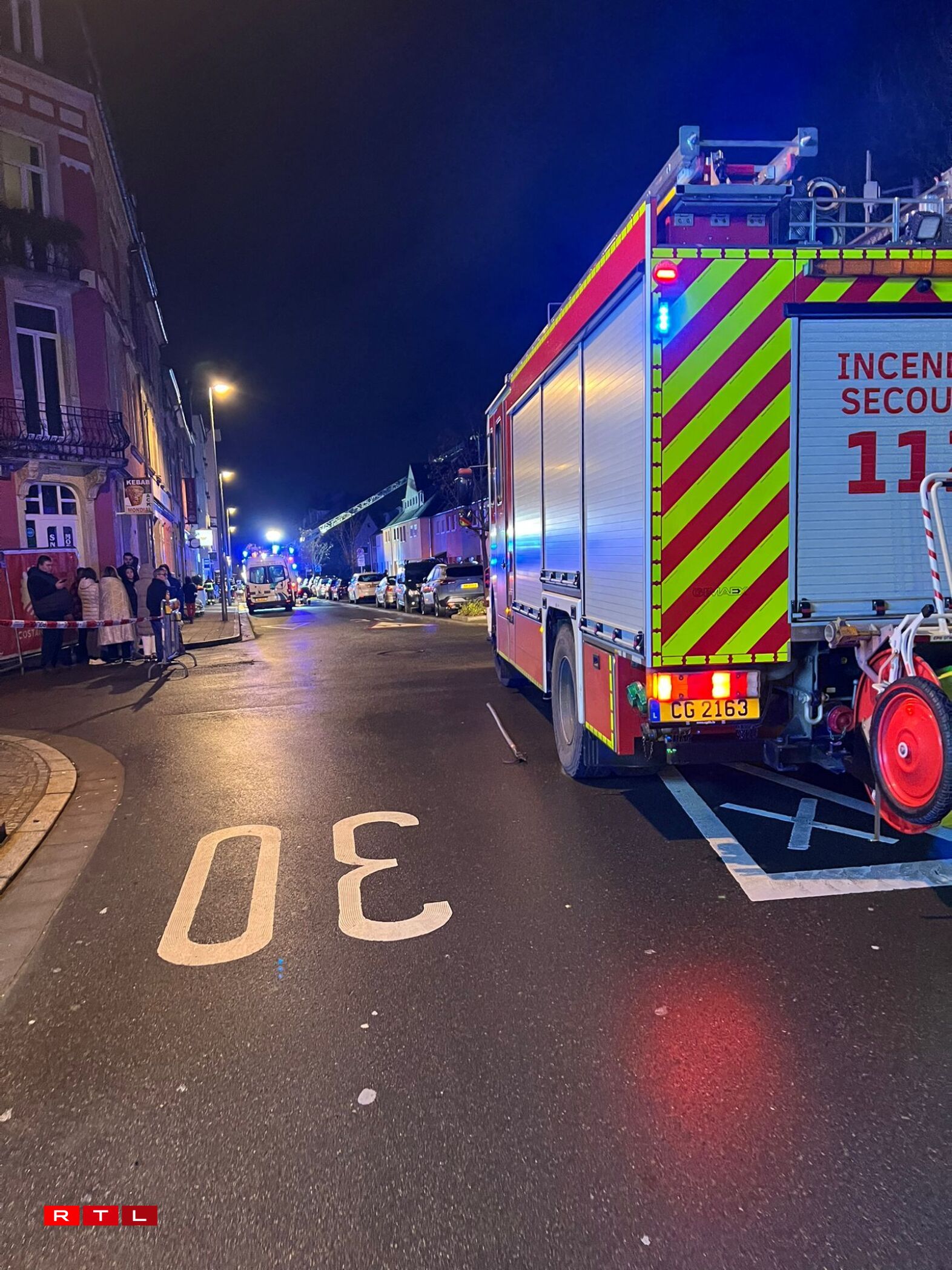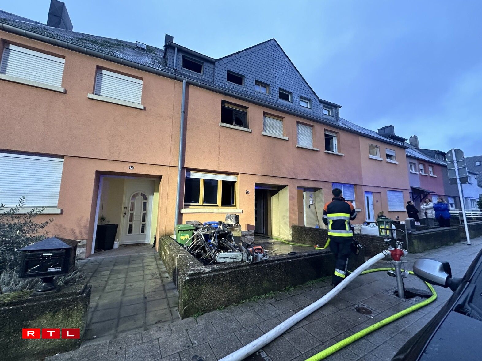 Nach bis no 7 waren d’Pompjeeën op der Plaz, fir d’Situatioun am A ze behalen. Den Ubau vum Haus hat och gebrannt an et bestoung d’Suerg, dass d’Feier do kéint op aner Haiser iwwergoen. Dat ass awer net agetrueden.