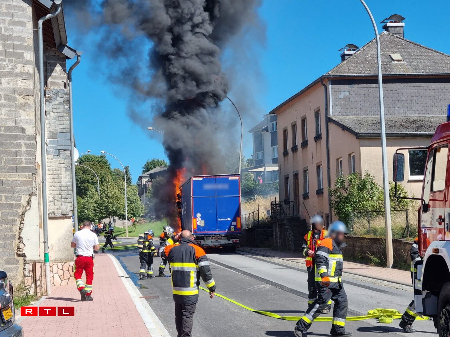 Fir de Brand ze läschen, goufen d’Pompjeeë vu Feelen, Angelduerf, Viichten an aus der Nordstad an den Asaz geschéckt.