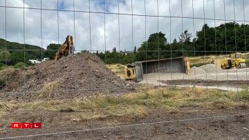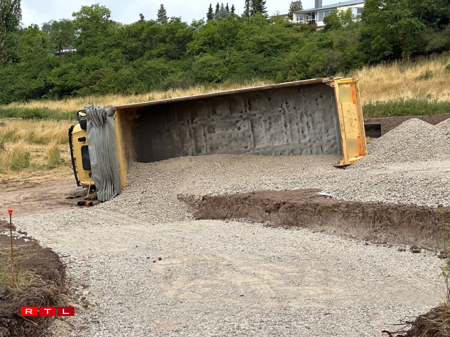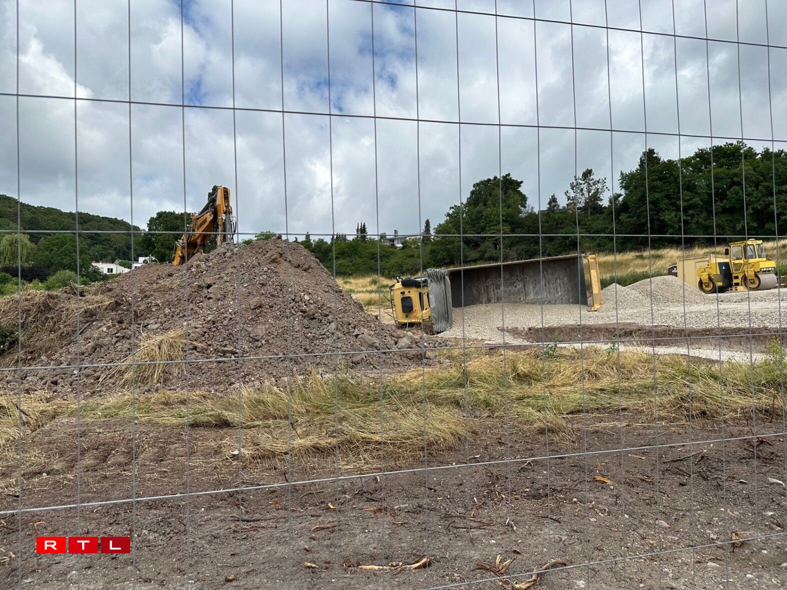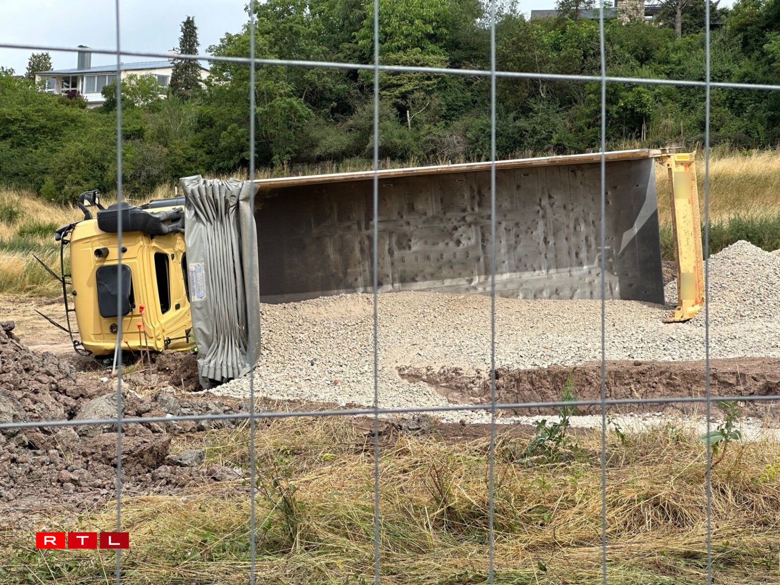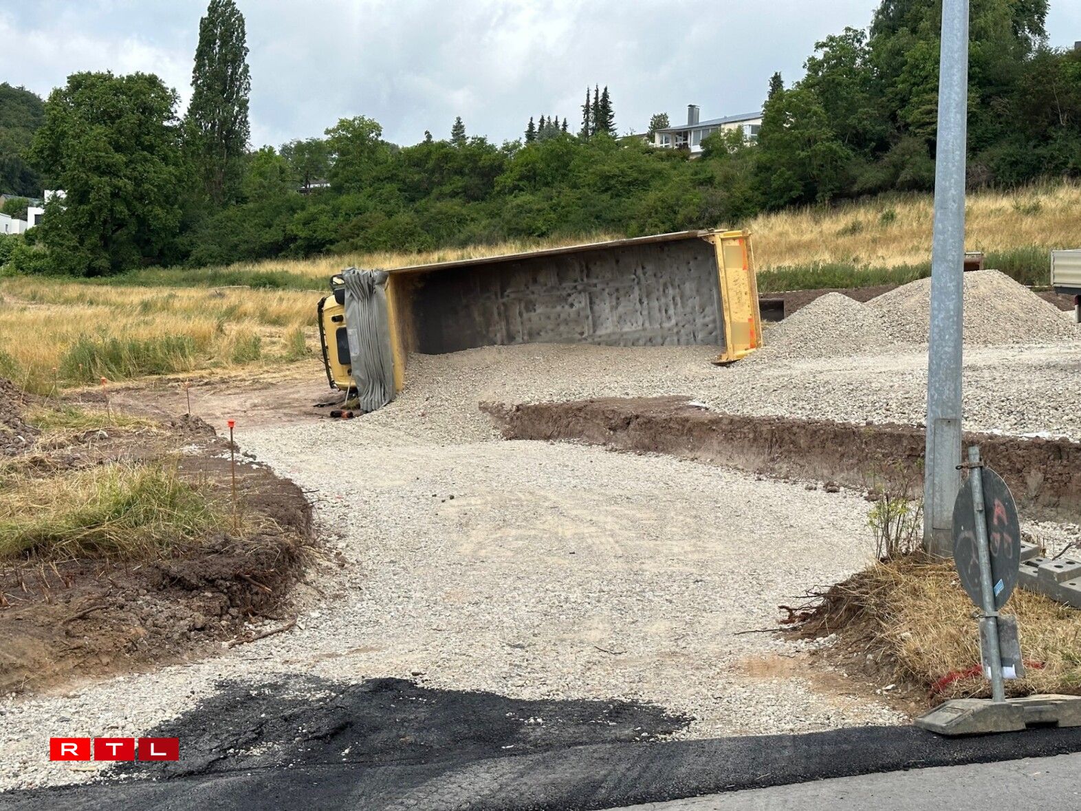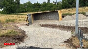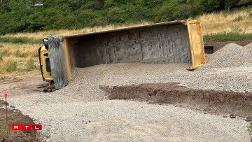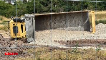 UeweraanwenCamion op Chantier ëmgekippt