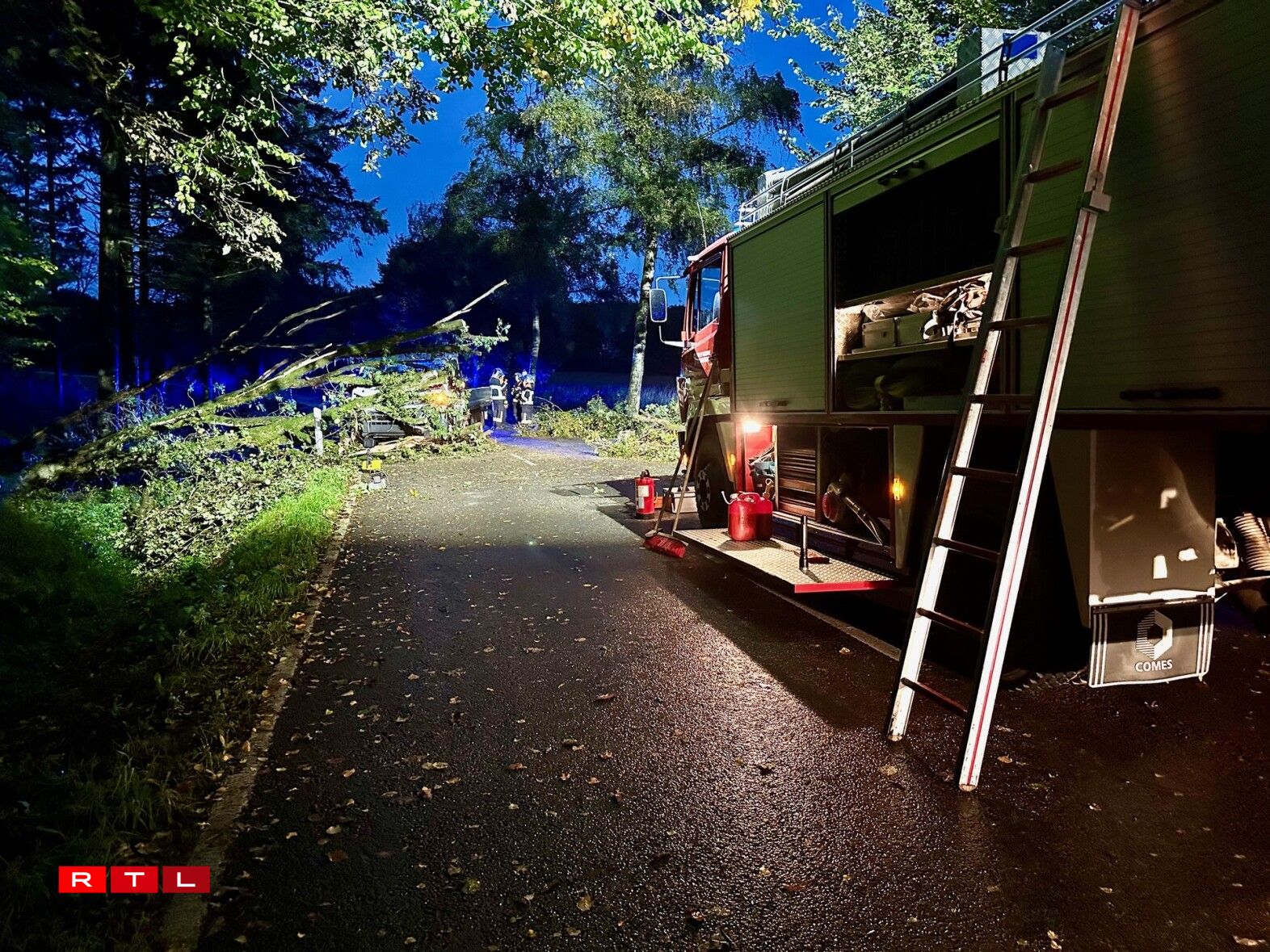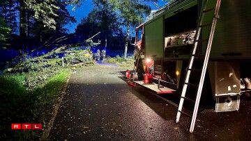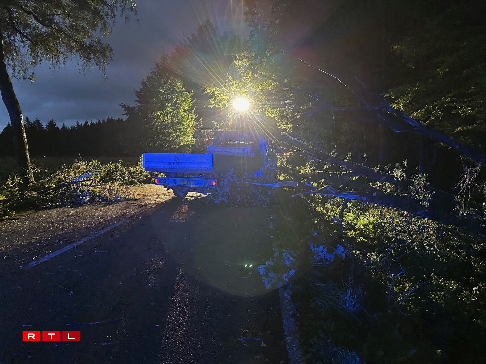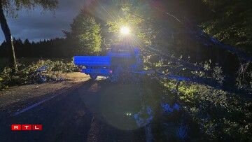 D’Streck, déi voll mat Beem louch, war wärend den Opraumaarbechten a béid Richtunge komplett fir den Trafic gespaart.