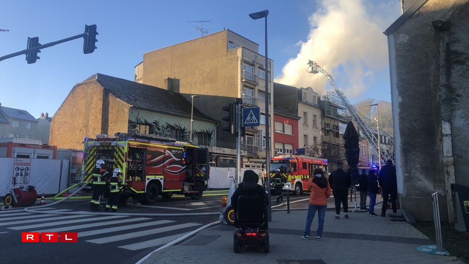D'Avenue de la Libération zu Schëffleng war en Dënschdeg de Moie gespaart, well vis-à-vis vum Supermarché d'Gespär vun engem Haus gebrannt huet.