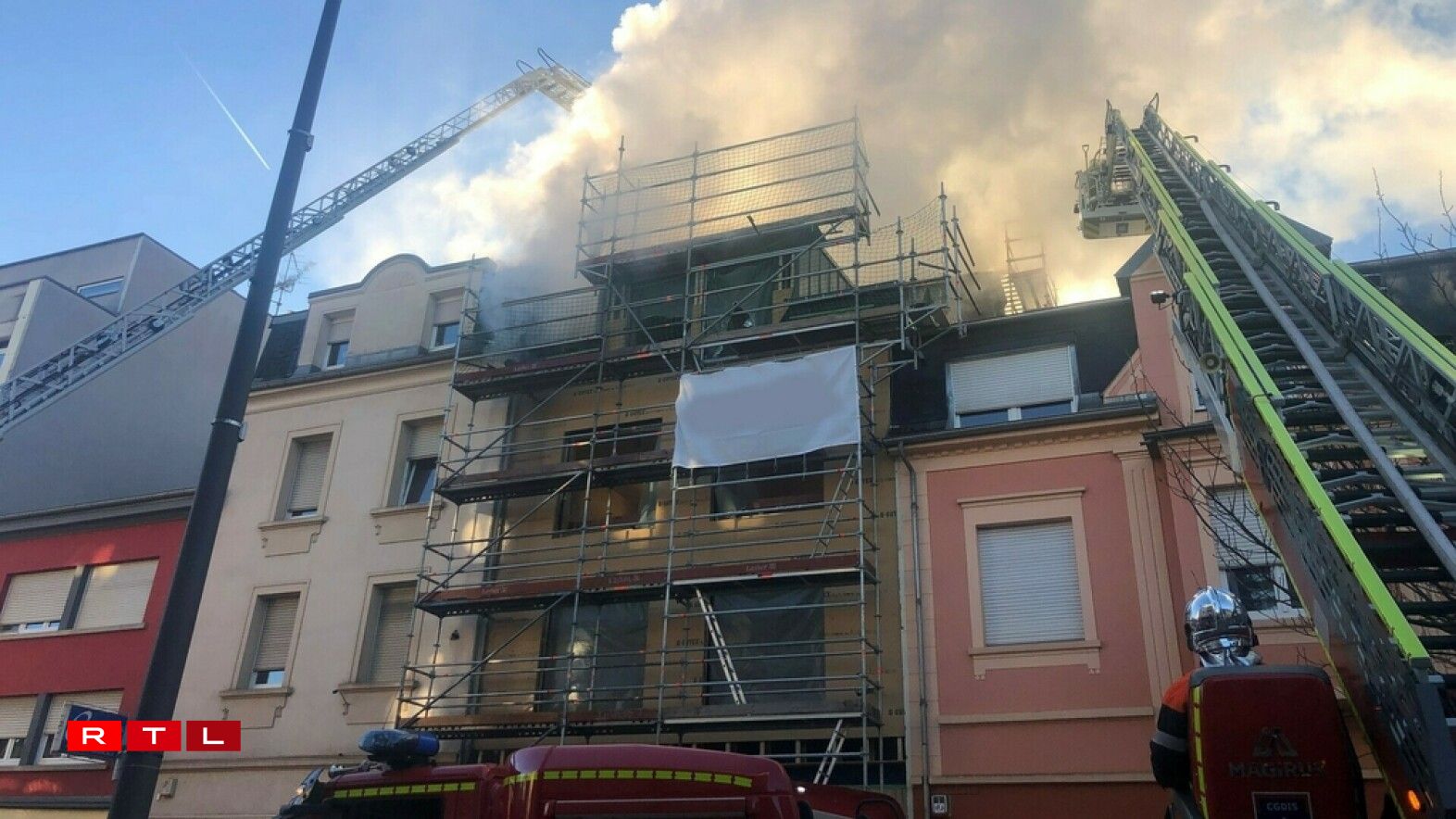 RTL-Informatiounen no hätt e Gebai gebrannt, wat als Logement social soll amenagéiert ginn. Hei hätten awer nach keng Leit gewunnt. D’Awunner aus dem Nopeschgebai, eng 12 Leit, misste relogéiert ginn.