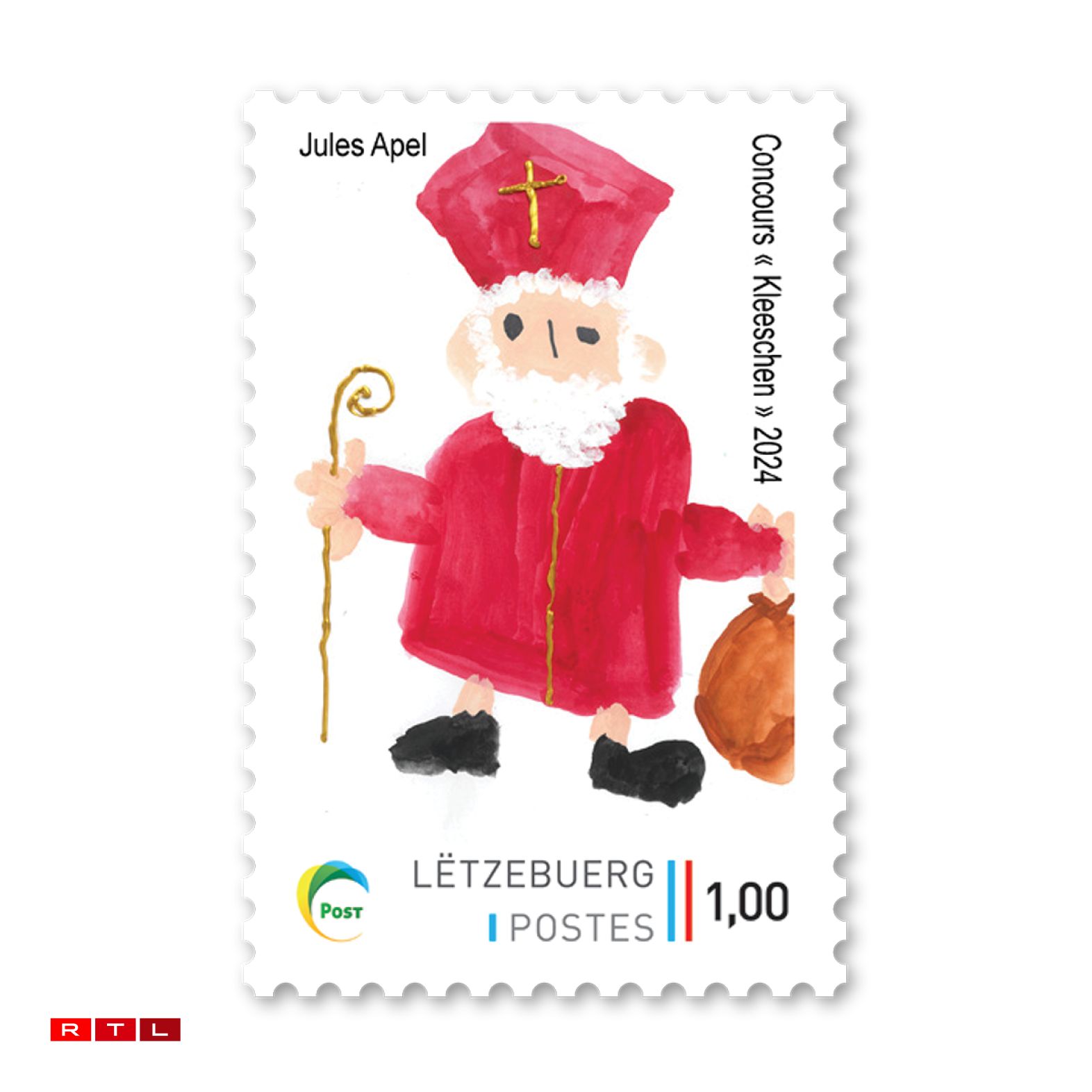 Iwwregens krut de Kleeschen dëst Joer och e Kaddo. An zwar hu Kanner aus dem ganze Land Biller fir hie gemoolt. Dem Gewënner säi Bild, dat vum Jules Apel, koum dann elo och als Timber eraus.