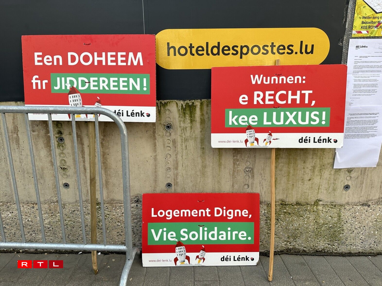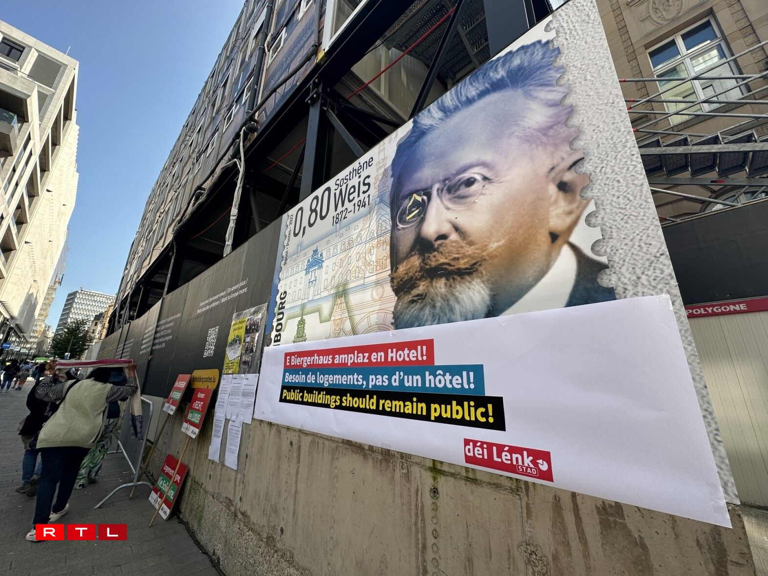 Déi Lenk protestéieren dogéint, dass aus dem ale Stater Postgebai en Hotel gëtt.