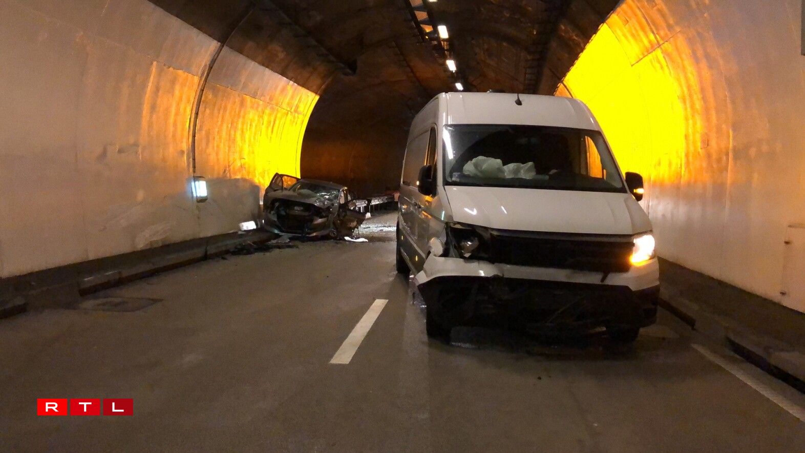 Duerch den Accident war am Tunnel nach een zweeten Accident geschitt, bei deem een Auto engem aneren hannendropgefuer ass.