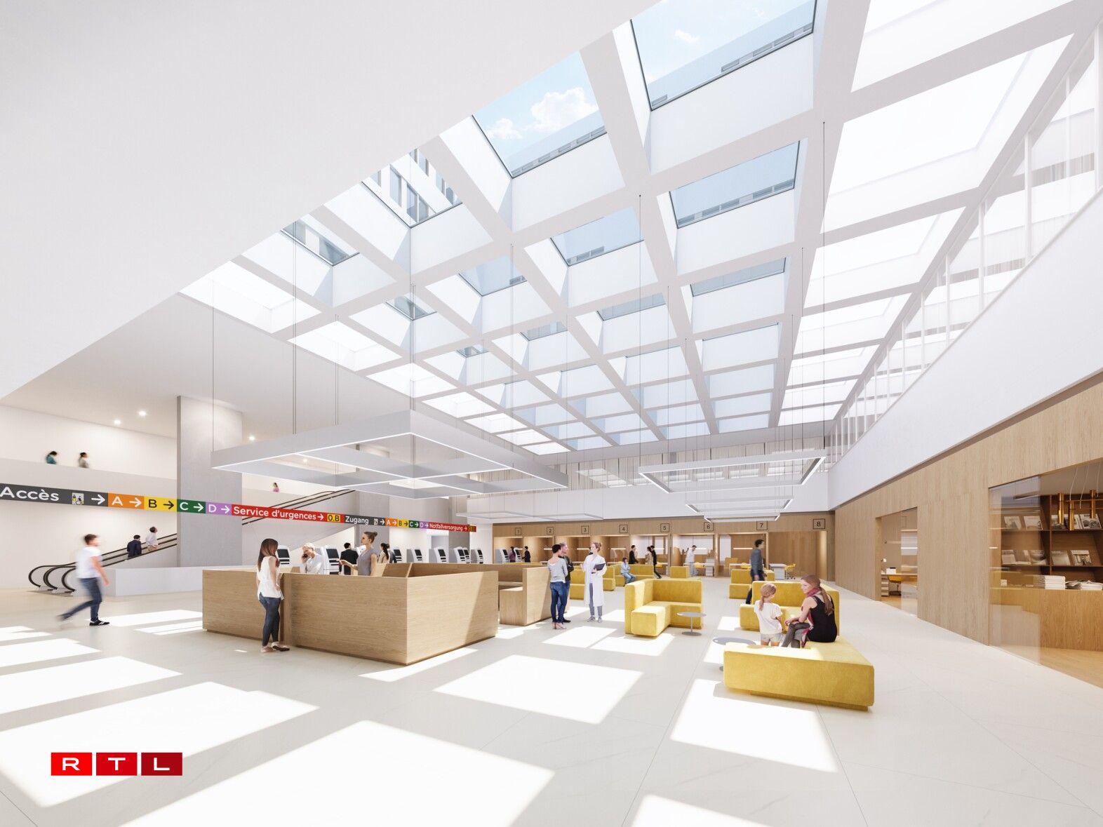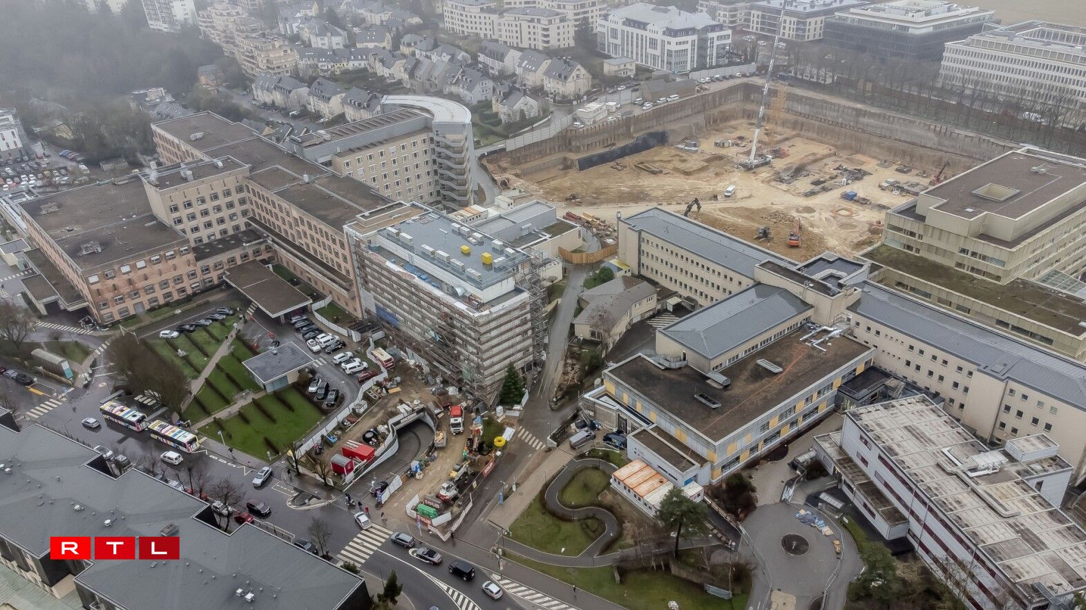 De Centre hospitalier du Luxembourg kritt eng komplett nei Struktur. Iwwer 54.000 Quadratmeter, 9 Etagen iwwer dem Buedem, 3 am Sous-sol, 18 OP-Säll, 6 Säll fir Endoskopien an 2 Heliporten.
