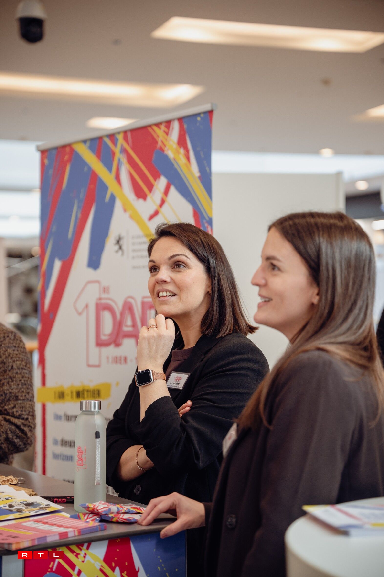 “Heiansdo erwaarde sech d’Leit, et wär e bësse méi wéi en Jobdag – dat ass et net. Wann och emol vläicht en Job dobäi erausspréngt, dat ka sinn. Mee et geet wierklech ëm Informatioun. An ech mengen dat ass dat, wat et och e bëssen eenzegaarteg mécht. D’Exposante befroe mer och all Joer. An ech mengen eleng schonn doduercher, dass se all Joer ëmmer gären erëmkommen, mengen ech, ass e gutt Zeechen an da si mer ganz zefridden”, sou d’Nathalie Schirtz.