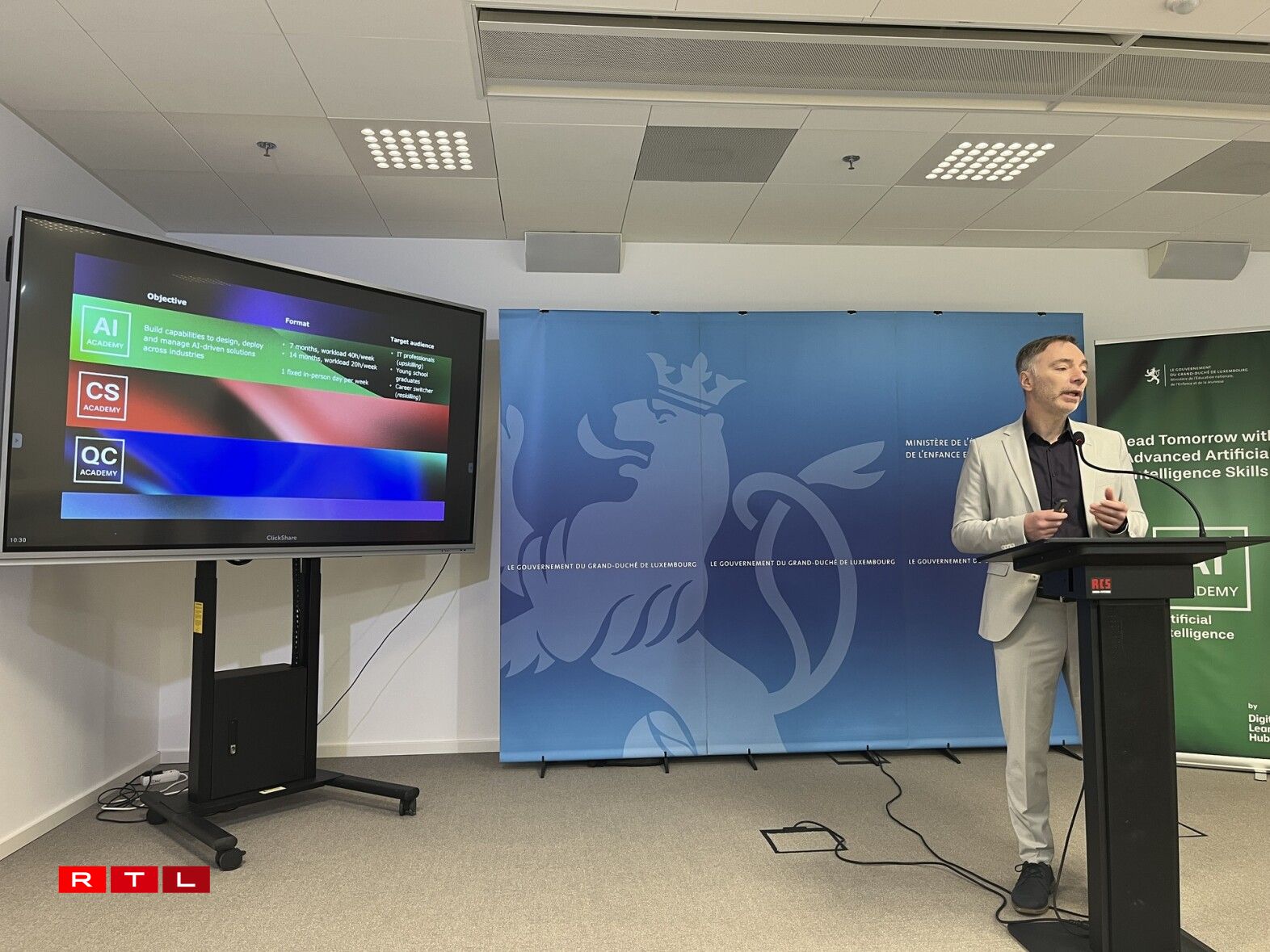 “Déi 3 Akademië sinn do, well am Cybersecurity-Beräich ass einfach d’Demande immens grouss hei zu Lëtzebuerg fir Experten ze hunn, déi eng Resilienz opbaue fir eis Entreprisen. Déi kënne verstoen, wéi mer eis Infrastrukture musse schütze géint Cyberattacken. AI – Kënschtlech Intelligenz ass wierklech lo ee Beräich, wou Lëtzebuerg sech wëll hin investéieren a wou ganz vill Entreprisë scho mat kënschtlecher Intelligenz schaffen a wou ëmmer méi Experte gebraucht ginn. A Quantum ass wierklech d’Chance fir d’Land fir sech an ee Beräich eran z’entwéckelen, wou mer wierklech kënne weltwäit matschaffen.”