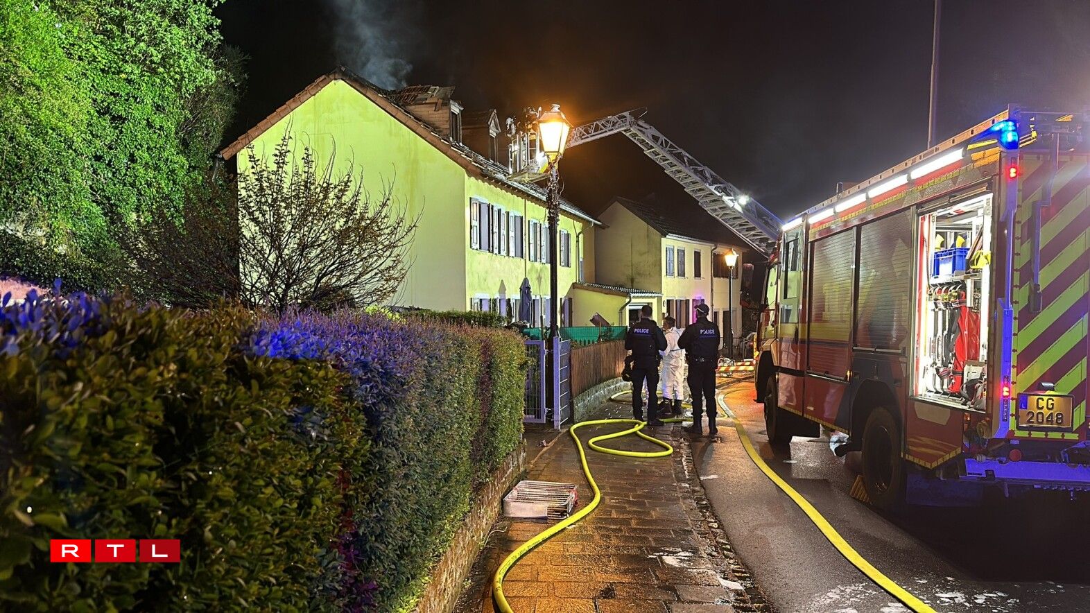 Feier zu BeefortE Méindeg géint 20 Auer hat den Daach vun engem Eefamilljenhaus gebrannt