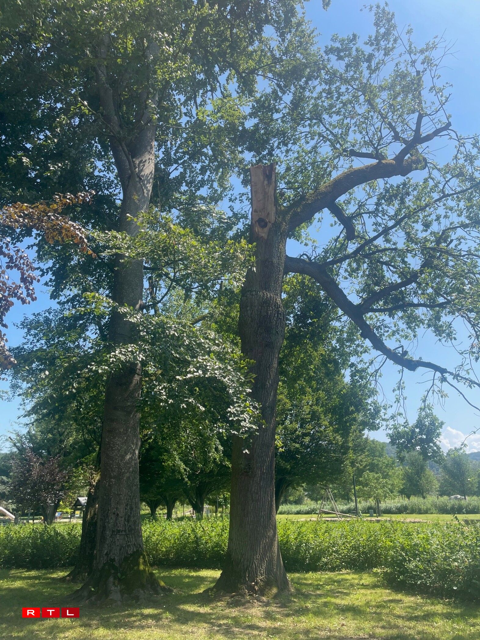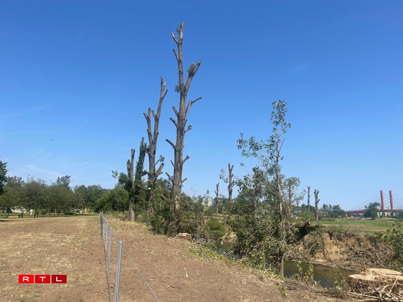 Hei bleift also e Fragezeichen, an nom Stuerm vu virun dräi Wochen och nach e Park, deen net méi no Park ausgesäit. Hei sinn et d’Beem laanscht d’Uelzecht, déi e ferme Coup kruten a vun deenen, wann iwwerhaapt, just nach e plakege Stamm iwwreg ass, mat Stëmp riets a lenks. Beem vu bis 150 Joer. Alles an allem eng Katastroph, déi d’Gemeng probéiert ze minimiséieren. Nei Beem gi geplanzt, och wann déi d’Aarbecht a Saache Klima vun deenen, déi ëmgefall sinn, net esou séier kënnen iwwerhuelen.