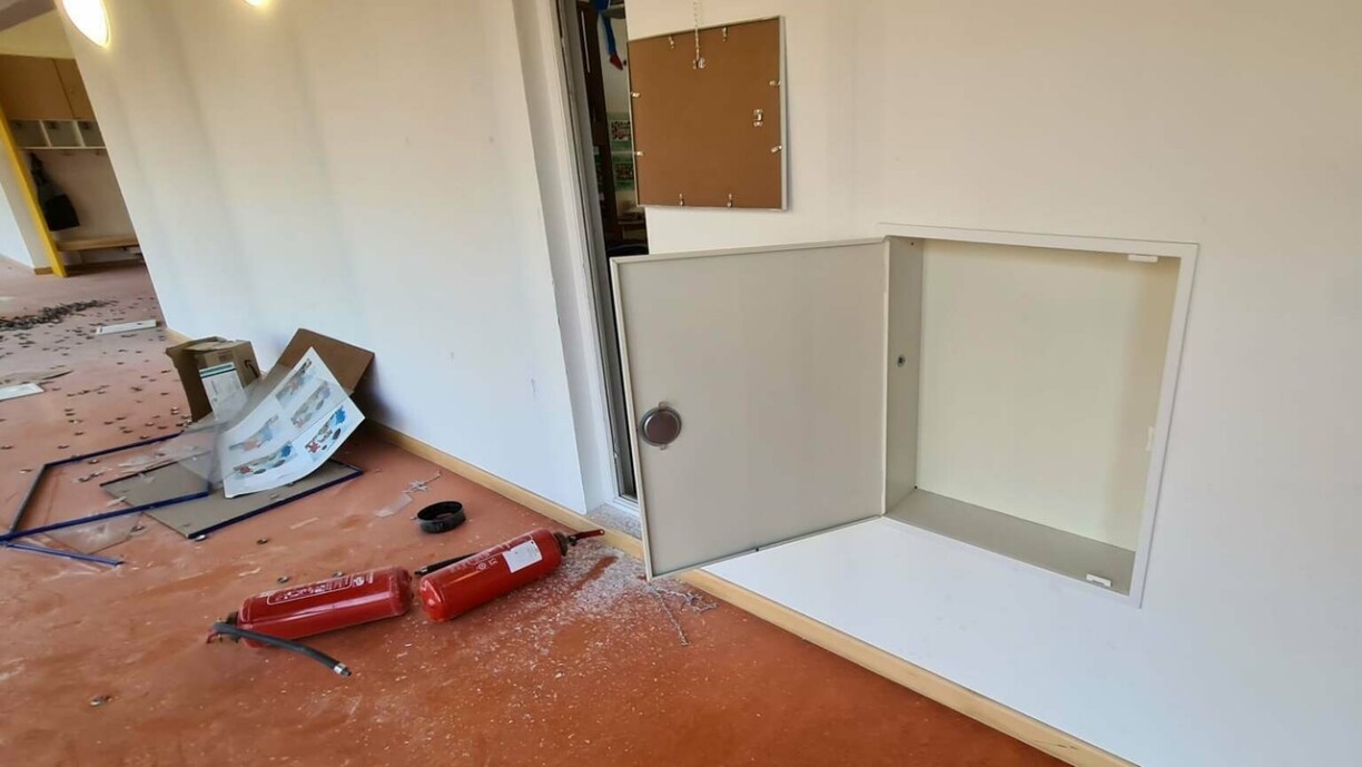 Ënnert anerem goufen d'Klassesäll verwüüst, Mauere mat Graffiti beschmiert a Knascht mat Feierläscher gemaach.