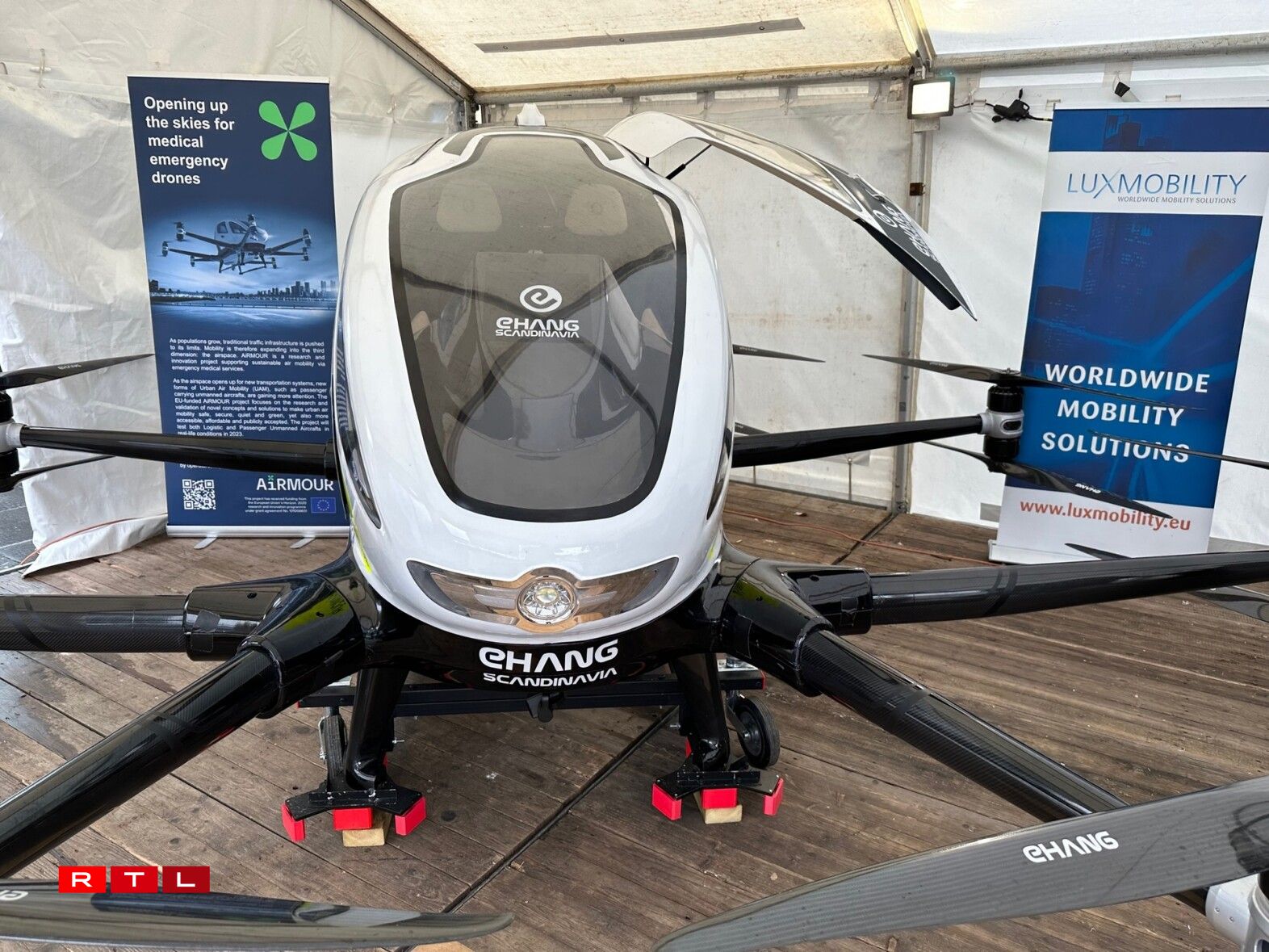 Dobäi handelt et sech em eng bemannten Dron, déi am Kader vum europäesche Projet “Airmour”, un deem och déi Lëtzebuerger Entreprise “LuxMobility” deelhëlt, presentéiert gouf.