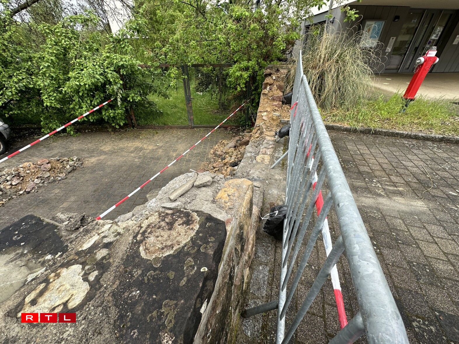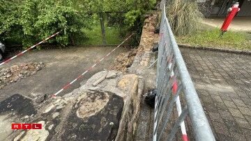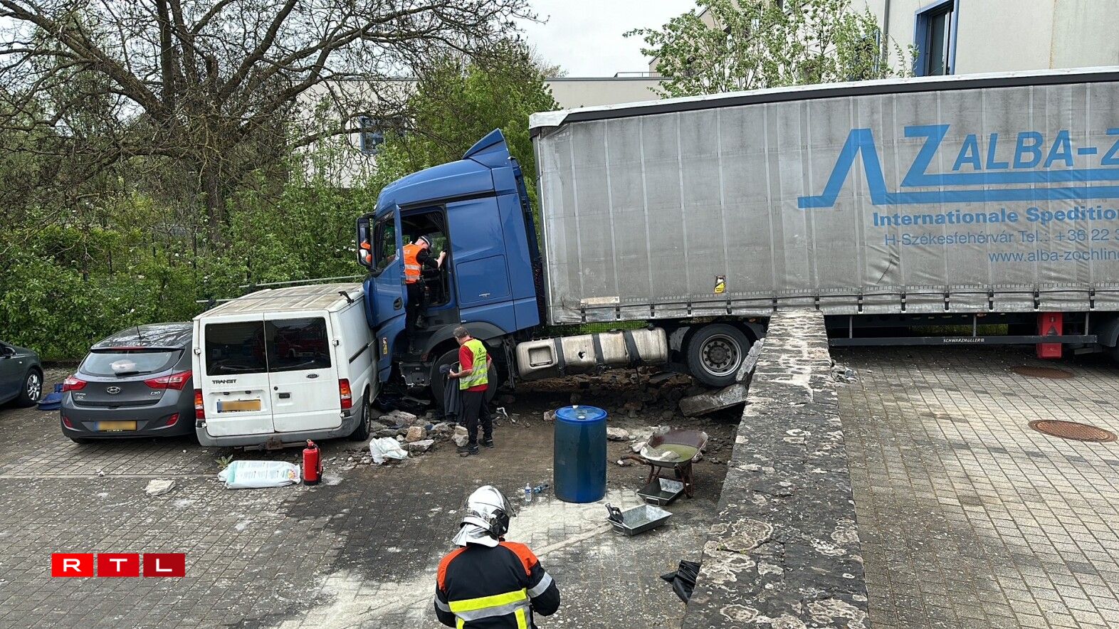 Materialschued: Camion a Mauer vu Parking zu Biissen gerannt, Chauffer liicht verwonnt
