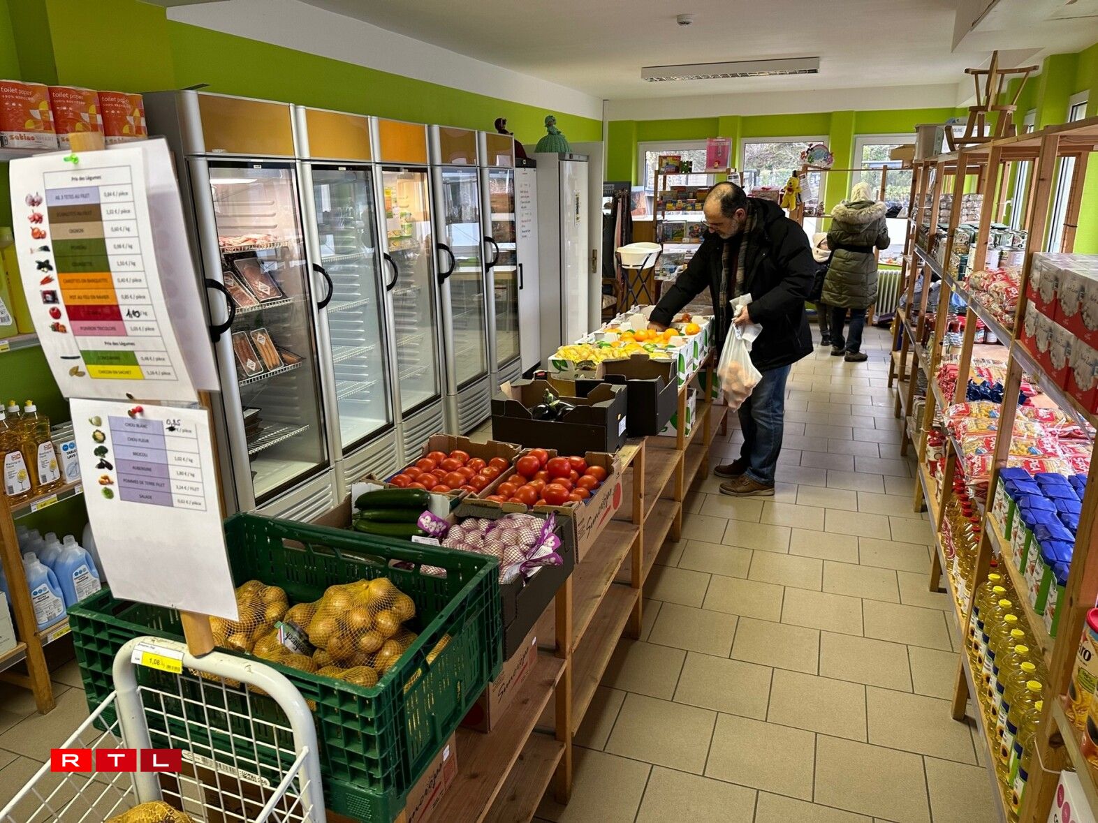 All Erwuessene kritt 25 Euro pro Woch kommen dann nach 20 Euro pro Kand respektiv 5 Euro pro Puppelchen dobäi. D’Präisser an dësen Epicerië vun der Caritas an der Croix-Rouge entspriechen engem Drëttel vun deenen an anere Butteker, esou d’Irène Jamsek, Responsabel vun de Caritas-Butteker.