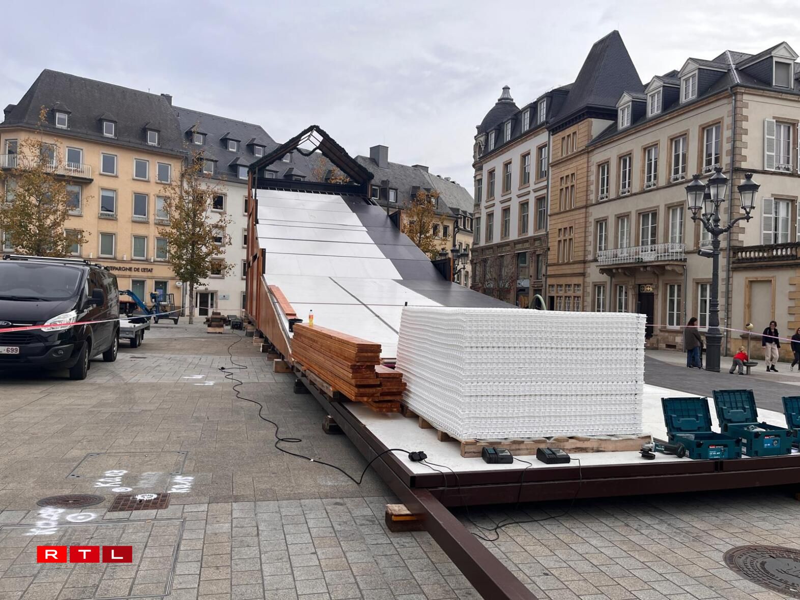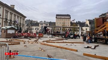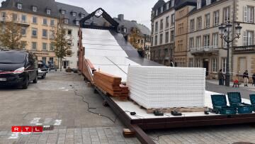 Ëm Allerhellegen hunn d’Opbauaarbechten ugefaangen; op der Plëss gouf sech en neie Layout ausgeduecht, esou de Patrick Goldschmidt vun der Stad Lëtzebuerg: “Do krute mir oft Remarke gemaach, no der Pandemie, no Corona, et huet een net méi déi convivial Plaz an der Mëtt. Mir haten do en zouene Rechteck, kann ee soen. Dëst Joer probéiere mir, dat ze briechen, fir dass mir op all den Ecker vun deem Rechteck eng flott convivial Plaz kréien, wou d’Leit sech kënnen treffen. A mir hunn och d’Stänn esou gestallt, dass se zu deene Säiten – zu de Commercen – op sinn.”