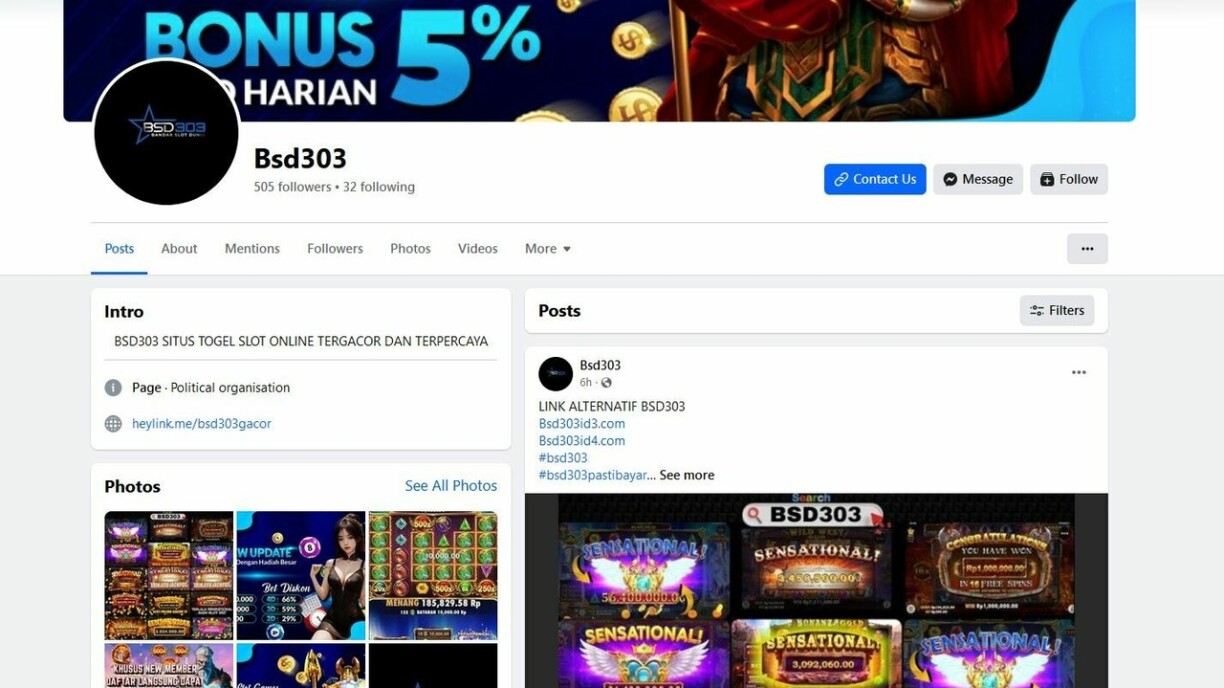 D’Reklamme ginn allerdéngs net vun der Partei gedeelt - hire Facebook-Site ass gehackt ginn. Zanter dem 2. September deelt d’Säit ënnert dem neien Numm “Bsd303" - Ofkierzung fir “Bandar Slot Dunia” - reegelméisseg Spam, begleet vun Texter, déi op indonesesch verfaasst sinn. Et gëtt awer och fir ee “Slot Server Thailand” Reklamm gemaach.