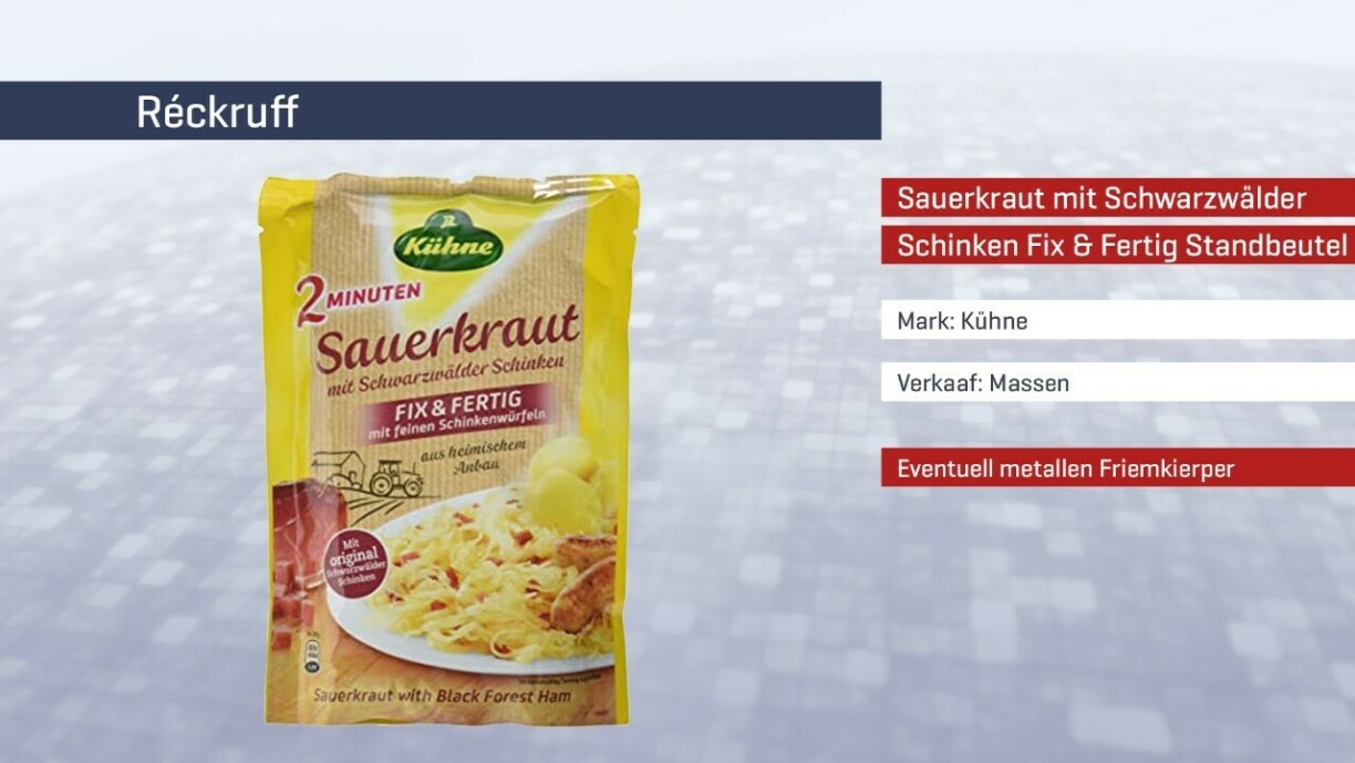 De Produit gëtt vum Massen op der Wemperhaart zréckgeruff. Et kann awer net ausgeschloss ginn, datt d'Fäerdegpackung och an aner Butteker verkaf gëtt.