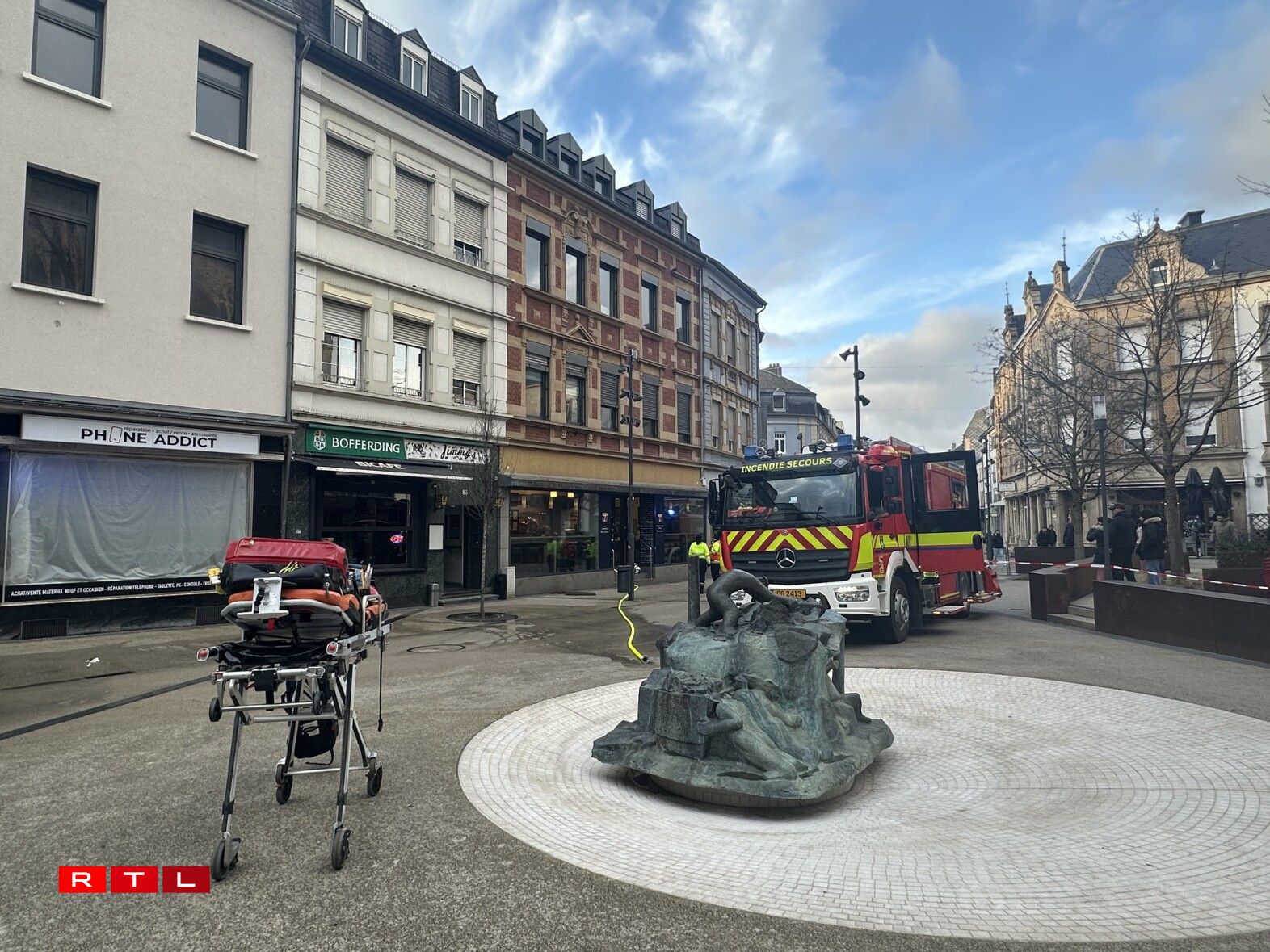 D’Strooss op der Héicht vum Haus Nr. 82 war wéinst dem Asaz vun de Pompjeeë gespaart.
